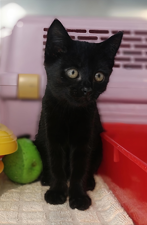 Comet is an absolutely adorable little male black kitten, cute as a button and bursting with love and affection. He's playful and inquisitive, always keen to explore his surroundings and see what's going on, but he's just as happy to soak up cuddles and attention. Comet has a lovely, gentle nature and a big heart, making him a joy to be around. This sweet boy will make a wonderful, affectionate companion for a home looking for a loving and playful kitten.