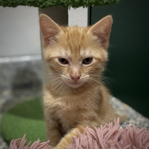 Peanut is a busy boy who loves doing boy things - playing with his brother and chasing flies. When he becomes tired, he'll settle down for a lovely snuggle and a purr with you. Peanut is a little shy, however he's quickly learning social skills and he will benefit greatly if his human companion spends time with him while he's in his play and snuggle modes. His colour is ginger tabby which means he has a "M" on his forehead and beautiful swirls of caramel on his body. Peanut's needs for a long, healthy life are:-