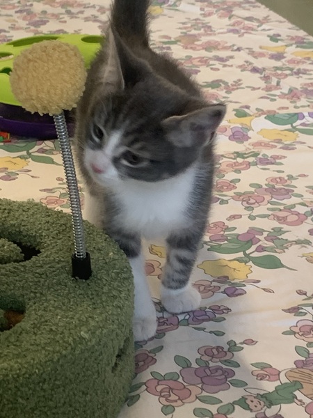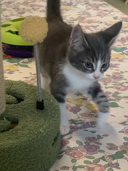 Hi there! I'm a playful little boy with a big personality and an even bigger heart. I'm the kind of kitten who wakes up every day ready for adventure - whether that's chasing a crinkly toy, pouncing on a wiggly string, or zooming around the room like I've got somewhere very important to be. I'm curious about everything, quick to make friends, and always up for a cuddle once I've burned off my energy.
