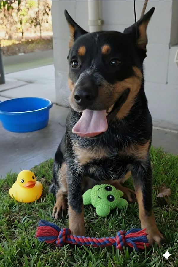 Bandit is the full package - affectionate, super-smart, social, and eager to please. He's the kind of dog who will bond deeply with his family, joining you in life's adventures and giving endless love in return.