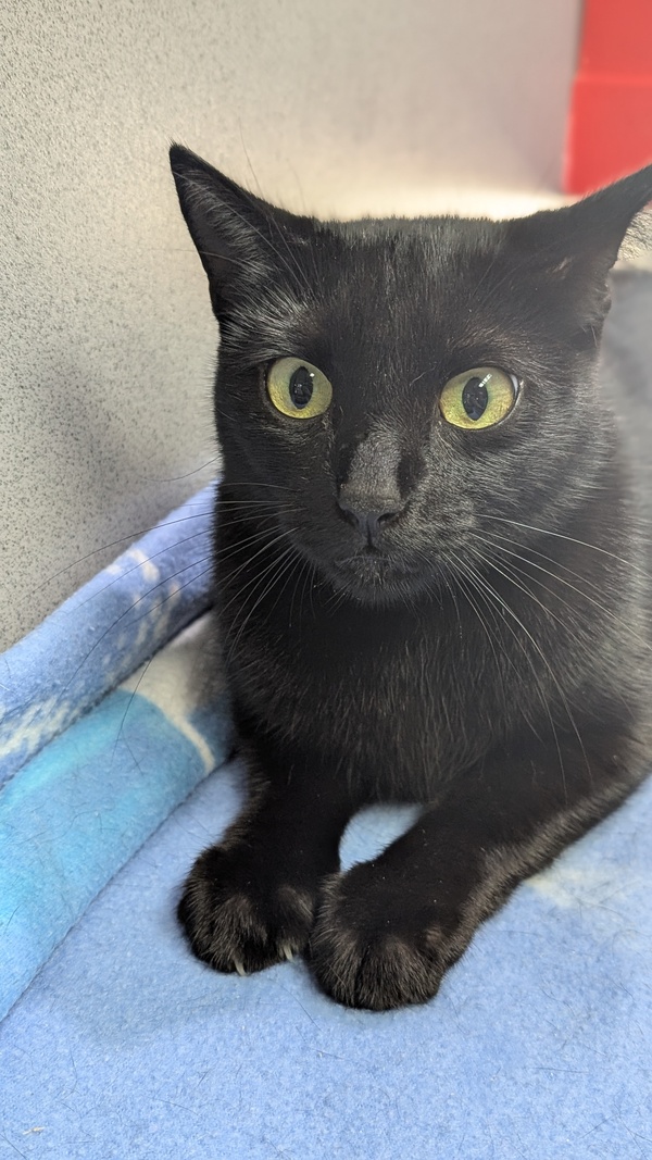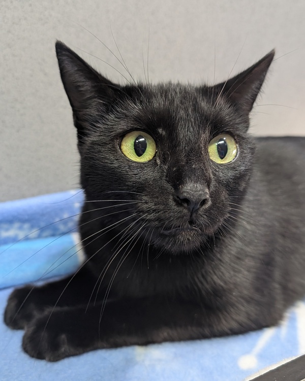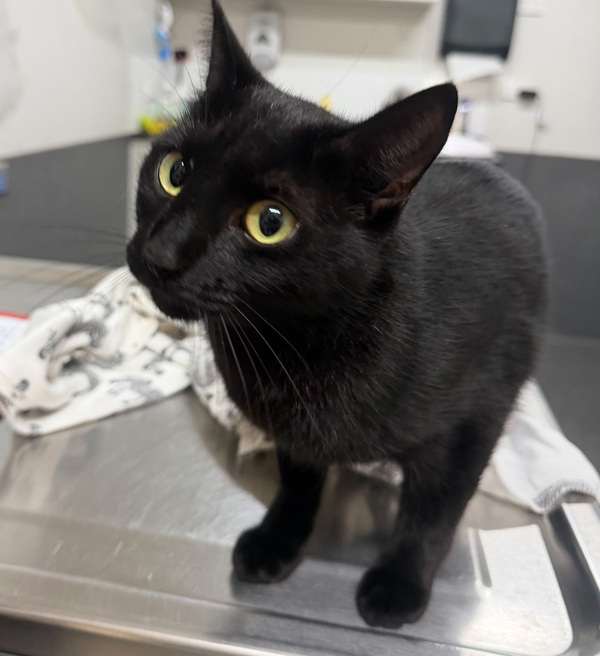 I am a shy girly at first but an absolute smoocher once I feel comfortable. I like to have a little chitter with you to convince you to give me all the pets. My tail looks a little wonky but vets say it doesn't cause me any pain. I think a home on the quiet side would be best for me, it will help me find my brave faster. Cat savvy kids will be a lovely addition, the more people to love me the better! Staff don't know how I feel about other cats yet as I am a solo girly for now. Absolutely no dogs! I don't want wet dog stink in my house! So if you are looking for a little black void with a broken tail I am your girl!