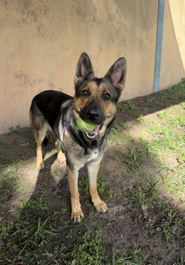 When it comes to fun, Coco has a soft spot for tennis balls - although she hasn't quite mastered the "drop" part yet! She does like to collect them and keep them close, so her new family will need to be mindful and continue working positively around resource guarding. Coco is a smart cookie who already knows how to sit and would love someone to keep her learning and building new skills.