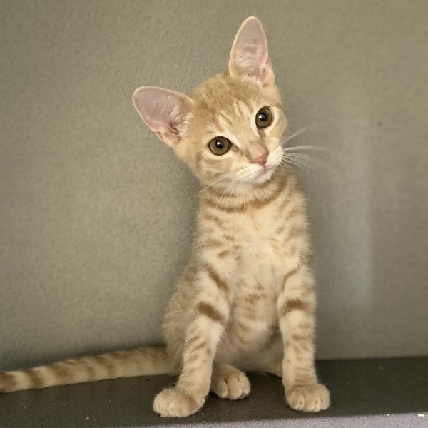 When it comes to meeting people, our little girl, Virginia, has a sweet 'wallflower' personality where she likes to check things out before she becomes involved. She loves you, however, to spend time with her - talking softly to her and giving her gentle pats. Once she has become comfortable with you, she will respond with lots of purrs and cuddles. When it comes to playing with her four siblings, she can hold her own with the boys. Virginia has a very striking cream-ginger tabby coat and beautiful soft eyes. We recommend the following care:-