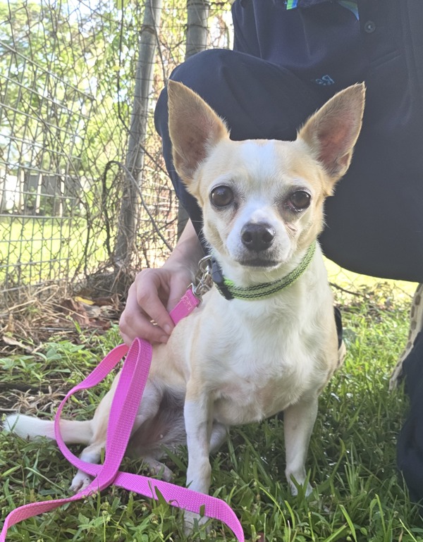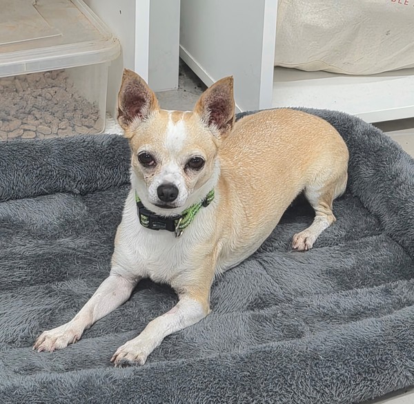 Meet Lili - the sweetest, friendliest little Chihuahua you'll ever have the pleasure of meeting. Lili is the definition of a lap dog. If there's a lap nearby, you can bet she'll be curled up in it, happily soaking up every bit of love and attention she can get. She's such a people-lover that she often hangs out with the team as our unofficial "office dog," greeting everyone who walks through the door with the most inquisitive, happy-to-be-here expression.Her warm, affectionate nature makes her impossible not to fall in love with. Lili thrives on companionship and cuddles, and she's always ready to snuggle in close and keep you company throughout the day. Whether it's relaxing on the couch or simply enjoying a quiet moment together, Lili will be right there beside you.If you're looking for a tiny dog with a huge heart and endless love to give, Lili is ready to claim her favourite place in the world - your lap.