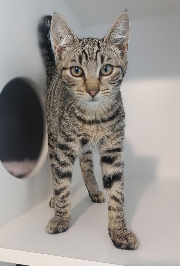 Brooke is a bright and beautiful short-haired tabby kitten with an outgoing personality and a playful spirit. This happy little girl is always on the move, curious about everything around her and ready to turn anything into a game. Brooke loves chasing toys, exploring new spaces, and keeping herself entertained, making her a fun and lively companion.