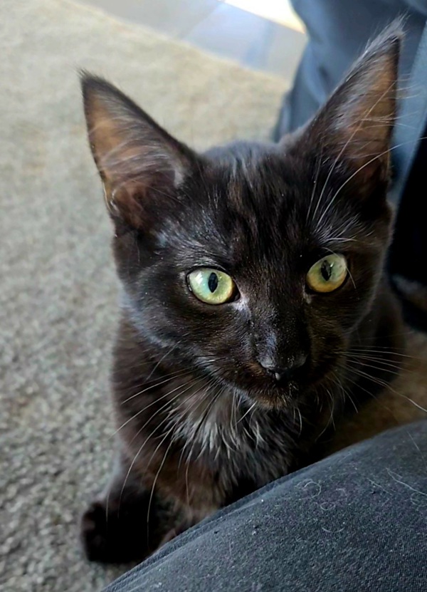 Meet Clive a sleek little "pocket panther" with a big personality! Raised indoors with his sister Judes, who helped him grow into the brave boy he is today, Clive has blossomed from a shy kitten into a confident, curious, and easy going companion. He loves a mix of gentle playtime and relaxed cuddles. Clive hasn't spent much time with children, but with a calm introduction he's likely to settle in well. He does have one cheeky habit he's a bit of a door-darter, so a secure home is a must. Full of charm and affection, Clive is ready to find his forever family.