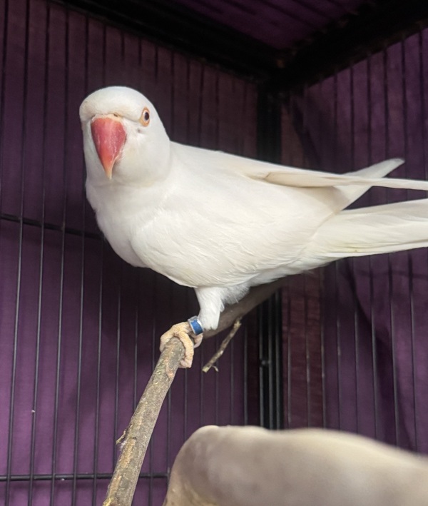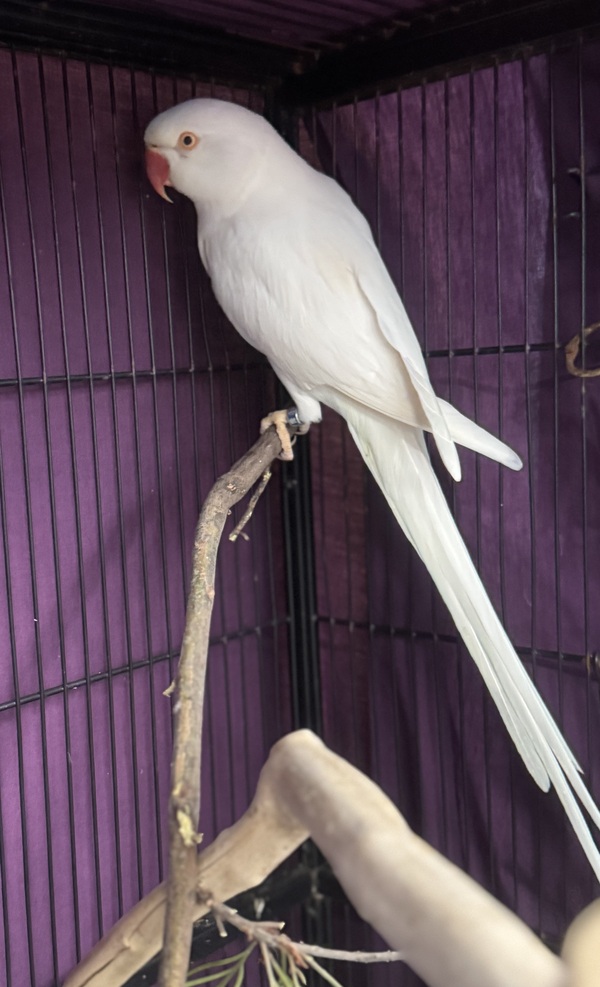 She requires a calm, quiet environment with patient carers who understand that trust may take a long time-if it develops at all. Because of her nature and the species' traits, prior Indian Ringneck or similar parrot experience is highly preferred.