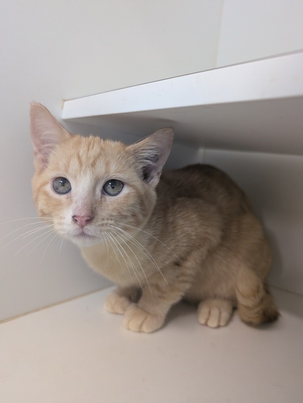 Hi, my name is Dorito. I'm a sweet, shy kitten, but I don't take long to come out of my shell. I am looking for a patient home that will love me forever. If you think that I'm the one for you, then please come to the RSPCA in Malaga to meet me today!