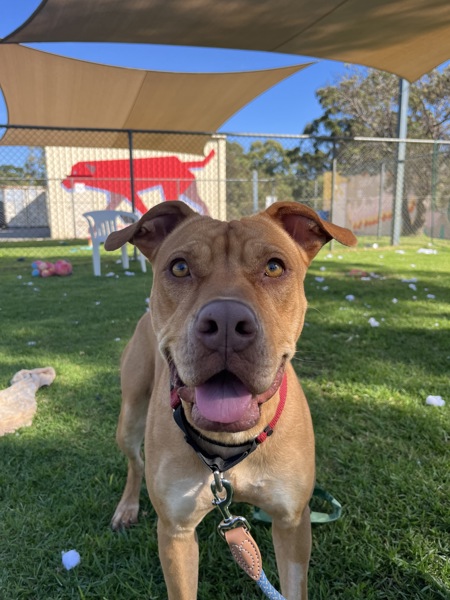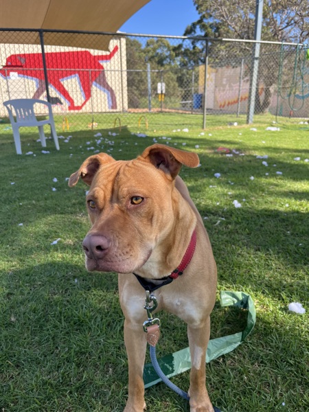 Hi, I'm Mila I'm a lovely one-year-old Staffy girl with a gentle, sensitive nature and so much love to give. I can be a little shy at first, but with a bit of patience and kindness, my sweet personality really shines through.I'd feel most comfortable in a home with older children who can help me build my confidence at my own pace. I may also enjoy having a canine friend, pending a meet to make sure we're a good match.I'd be happy in a home with full-time humans, given a nice settling-in period of course. With the right home, I'll blossom into a loyal, loving companion who will steal your heart in no time.Love,Mila