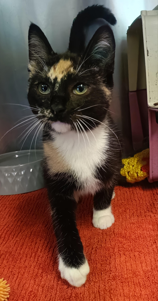 Aleah is a gorgeous dark calico kitten with striking colours and a personality that shines just as brightly. This little girl is wonderfully outgoing and full of life, always ready to play, explore, and turn everyday moments into fun adventures. She absolutely loves being handled and thrives on attention, happily soaking up cuddles and interaction from everyone she meets.
