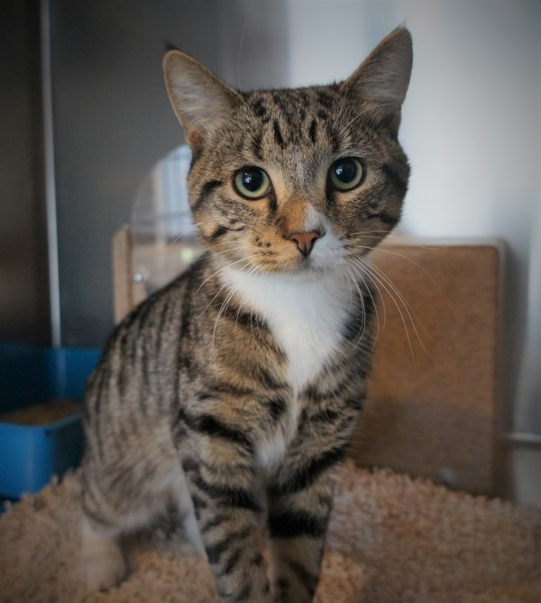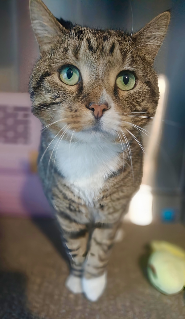 Gylfie is a 5-year-old male tabby and white domestic shorthair with a quiet, lovely disposition. He loves his food, has a chunky build, and is very tidy-his calm presence makes him a soothing addition to a peaceful home.