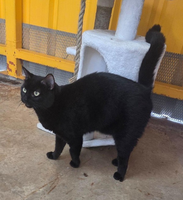 With her sleek, midnight-black coat and affectionate nature, Tilly is as gorgeous as she is loving. She adores cuddles and will happily curl up beside you, purring contentedly as she soaks up your attention.