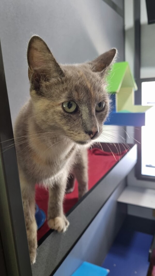 Say hello to Mero, a lovely 3 year 8 month old female cat looking for her forever home. Mero has a gentle, calm nature and prefers a peaceful environment. She enjoys being the centre of attention and would thrive as the only feline companion. Mero is best suited to an indoor lifestyle where she can feel safe and secure. She's recently had dental treatment so has a shiny new smile but with the odd tooth now absent. A good quality diet will maintain her dental hygiene. She is a sweet soul who will reward her adopter with quiet companionship and affection. She's the perfect match for someone seeking a gentle, low-key friend to share their home.