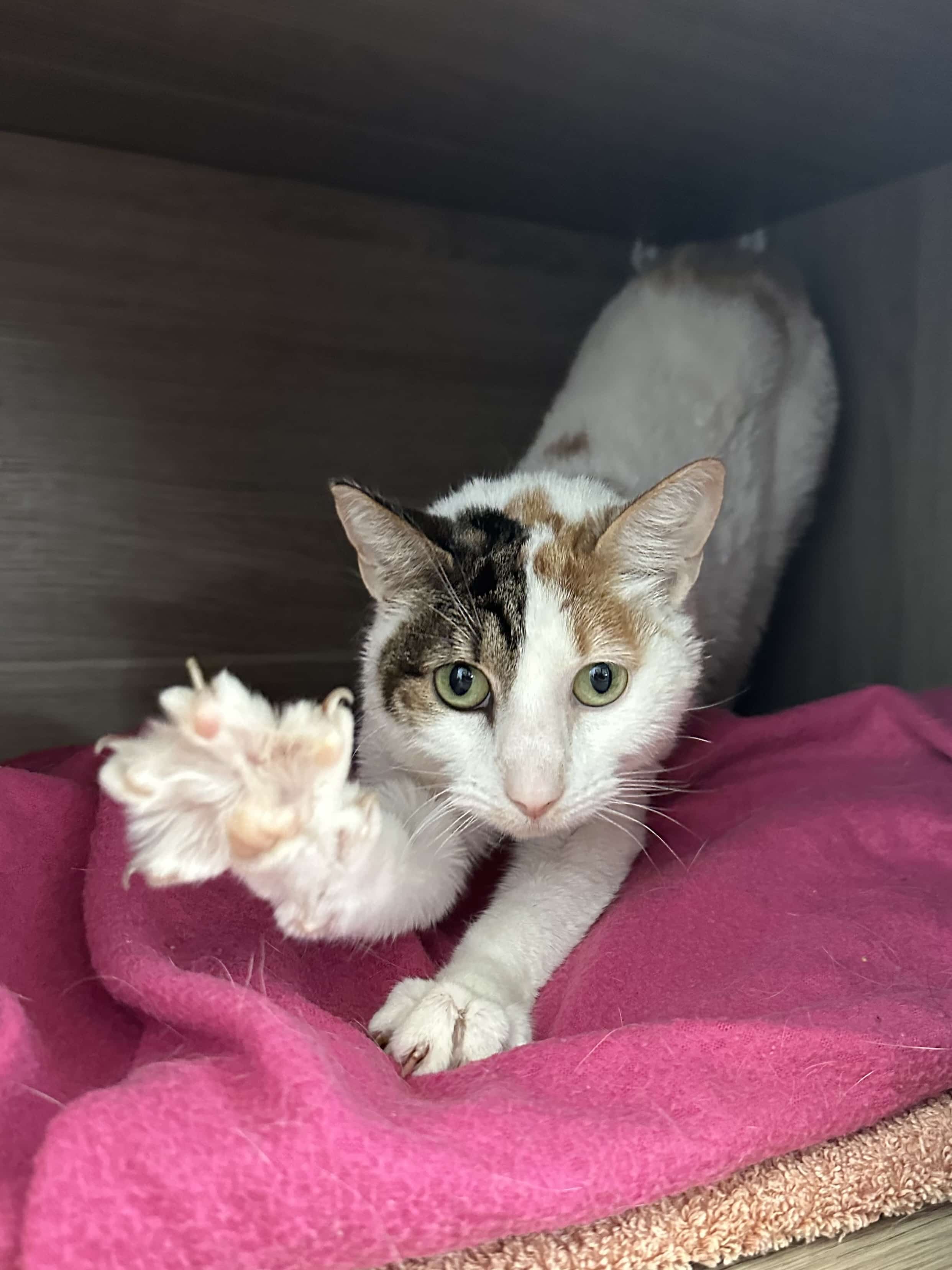 - A gentle and patient approach is best with me as loud noises and big movements can spook me. If you give me the chance to open up I blossom into an affectionate girl who will roll and purr for more pats.