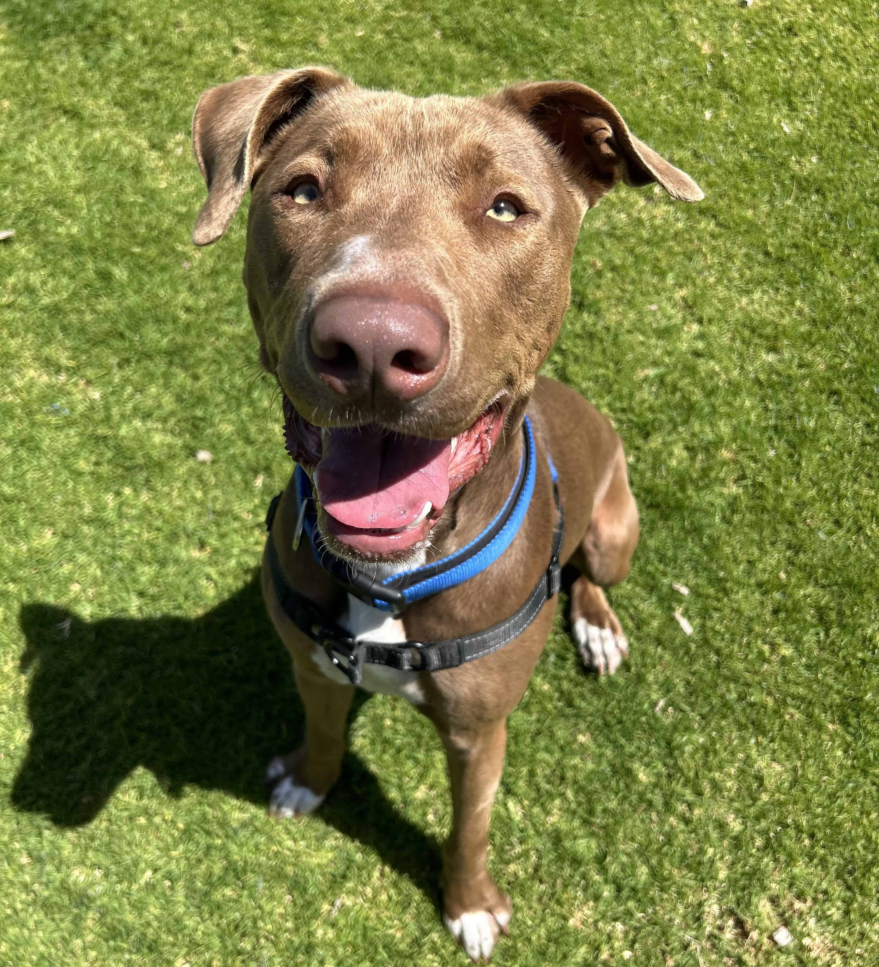 I’m a warm, soft-hearted boy with a dash of playful goofiness. Whether I’m trotting around with my big happy smile or lying outside soaking up the sunshine like a toasty bagel, I bring instant joy to everyone I meet. I love stretching my legs on a nice walk and running around the backyard it’s my favourite way to get my sillies out! At the end of the day, I’m all about the cuddles. I’d love nothing more than to curl up next to someone who will give me all the pats I could ever want. With a little basic training, I’ll be well on my way to being the best boy in the whole world.