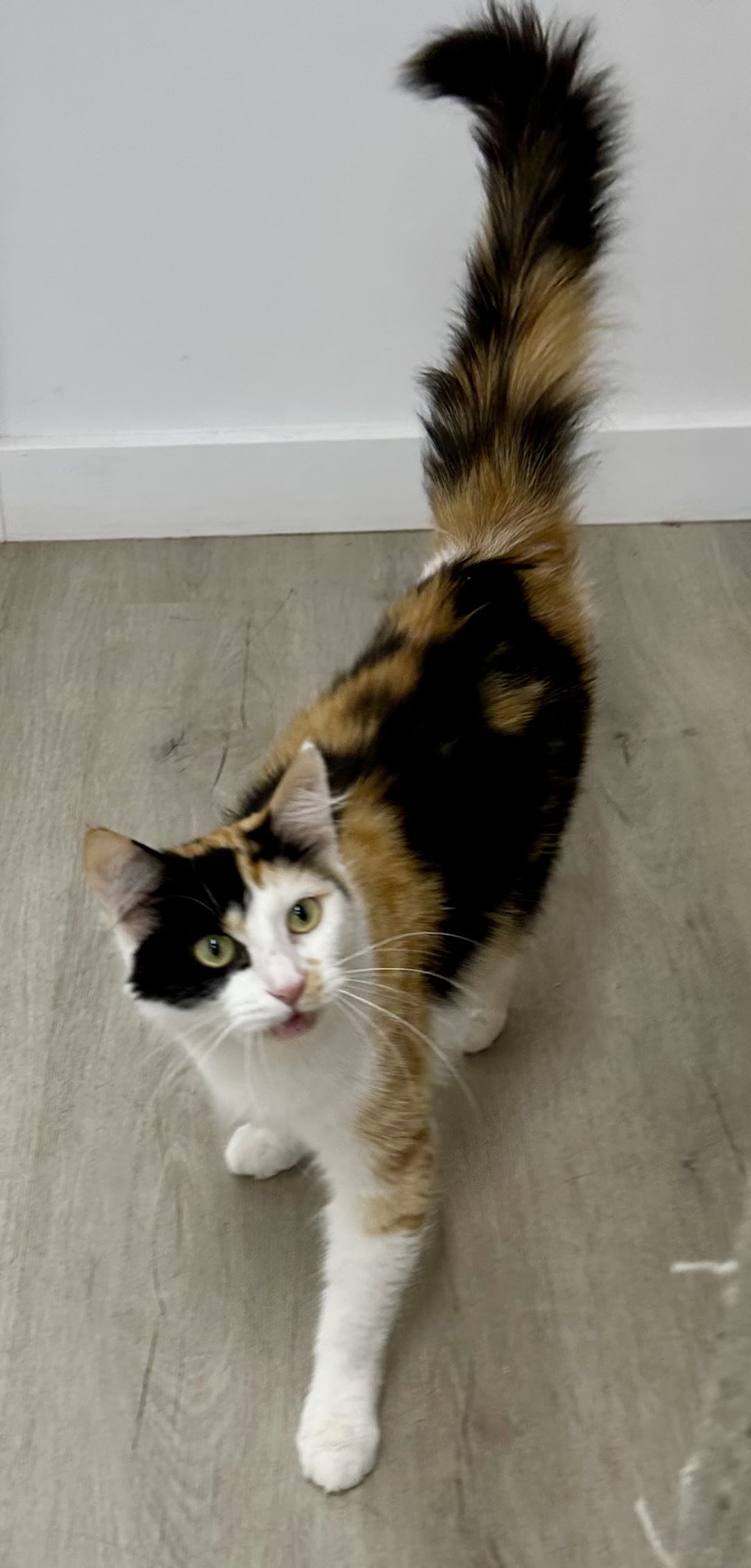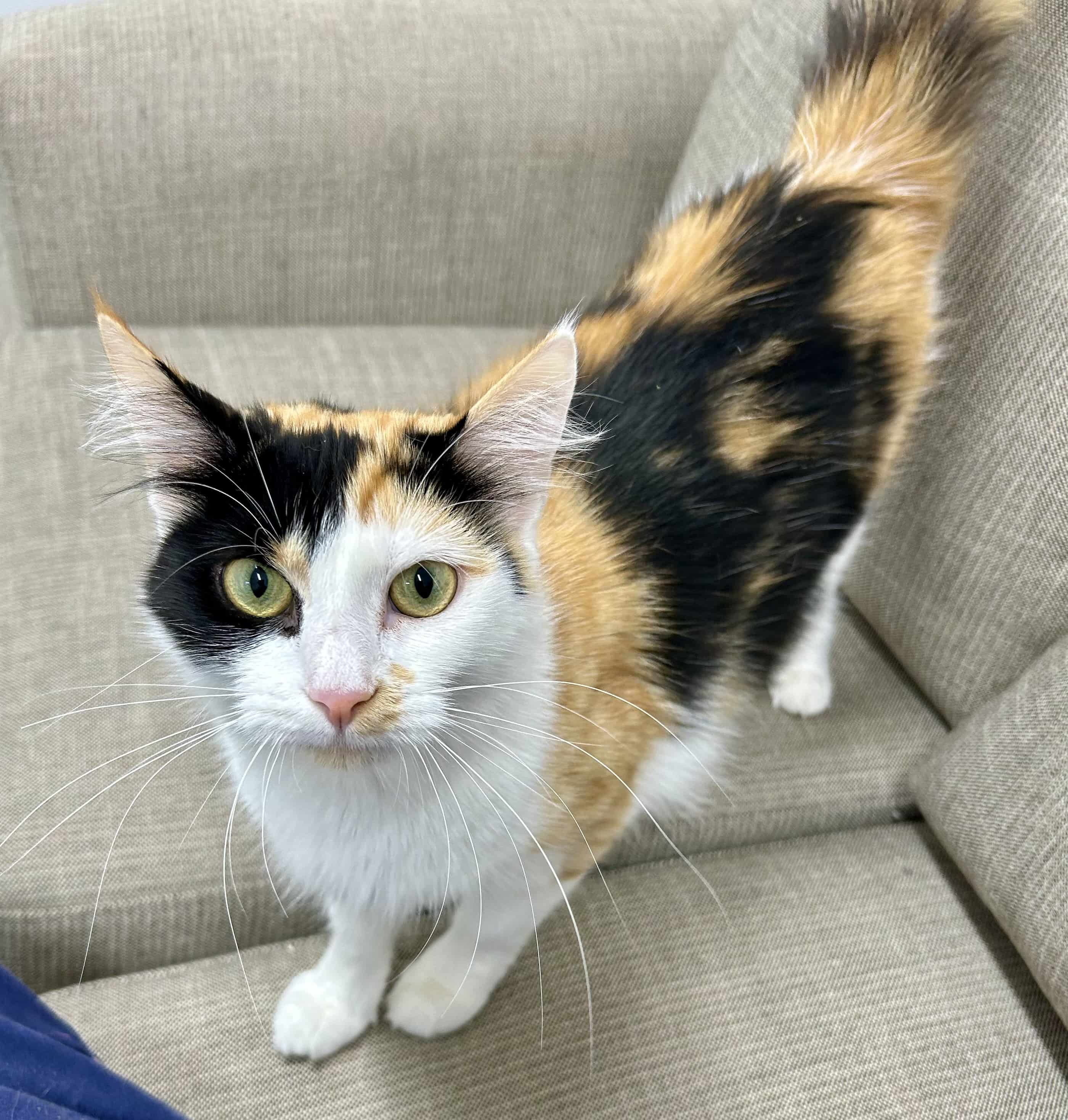 Hello there, I'm Hera, your future fur-ever friend. I'm not your average, hyperactive kitten, but I do love a good play session. My medium energy level means I've got the perfect balance of play and nap, so I'll be by your side for both fun and relaxation. My ideal home will be a peaceful haven, preferably with humans who are 6 years and older. I believe in taking things slow and steady, and I'm looking for family members who share the same philosophy. Contrary to the popular belief, I'm not a loner. I love being around my human friends, and I'm fairly sociable around my feline peers as well. I'm not too picky about who I share my space with, as long as they respect my boundaries. If you're a first-time adopter, don't worry, I'm patient and I'll guide you through the process. All I ask for in return is a loving home, where I'll be cherished and cared for. Can't wait to meet you and purrhaps, find my forever home with you. I promise, with me, every day will be a purr-fect day!