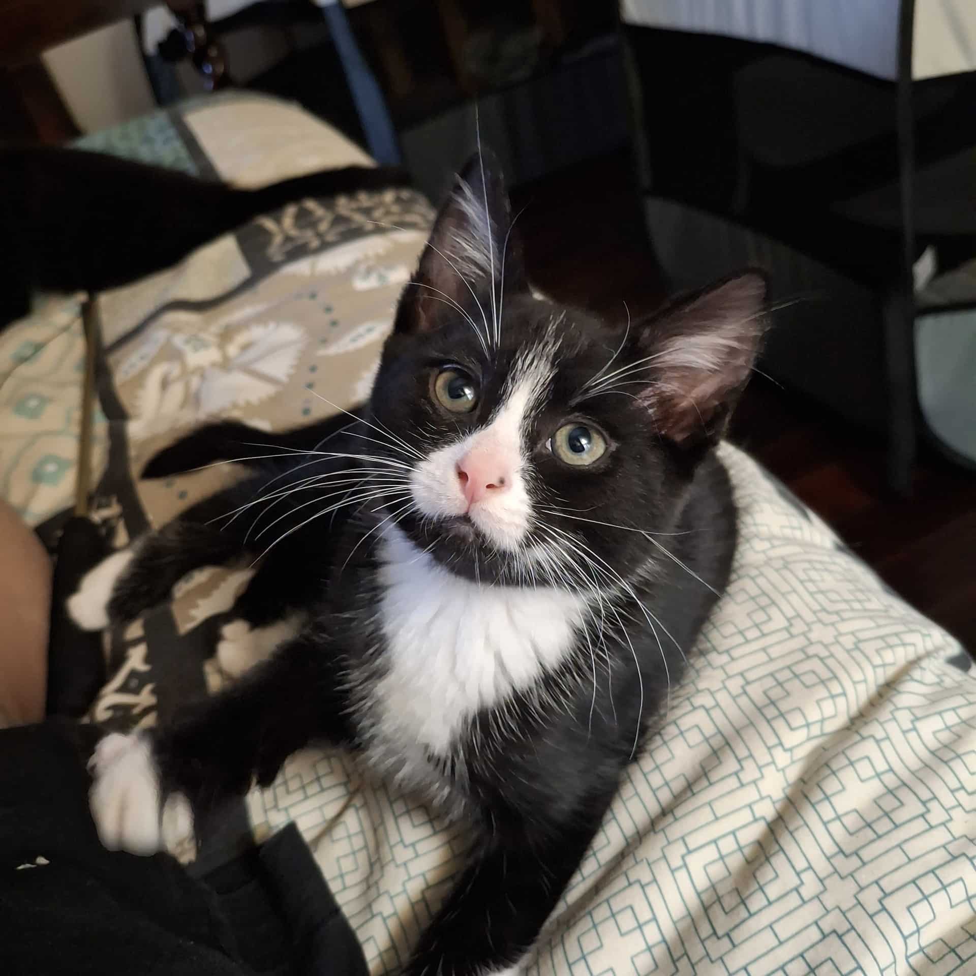 I am a very playful and curious kitten! I love nothing better than running amok with my siblings - there are five of us and we have kept our foster carers busy with our antics. Once I'm tired out from play, I'm ready to have a snuggle on your lap, make some biscuits and purr my head off while you gently stroke my head and back. I would describe myself as affectionate, playful and ready for adventures in my new home! Being adopted along with one of my siblings would be the best but I'm sure I could live happily with other pets if you let me settle in and then a slow introduction to your resident pet.