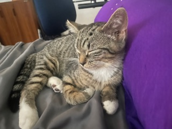 Hi, my name is musamel or musi for short. I do love to play but i love to cuddle more I will follow you wherever you go and as soon as you stop ill be looking for a cuddle. The cat wheel at my foster home has been great fun and i can independently wear myself out on it. Leaving me tired and ready for more cuddles. Mario and I are pretty close and a home together would be amazing.