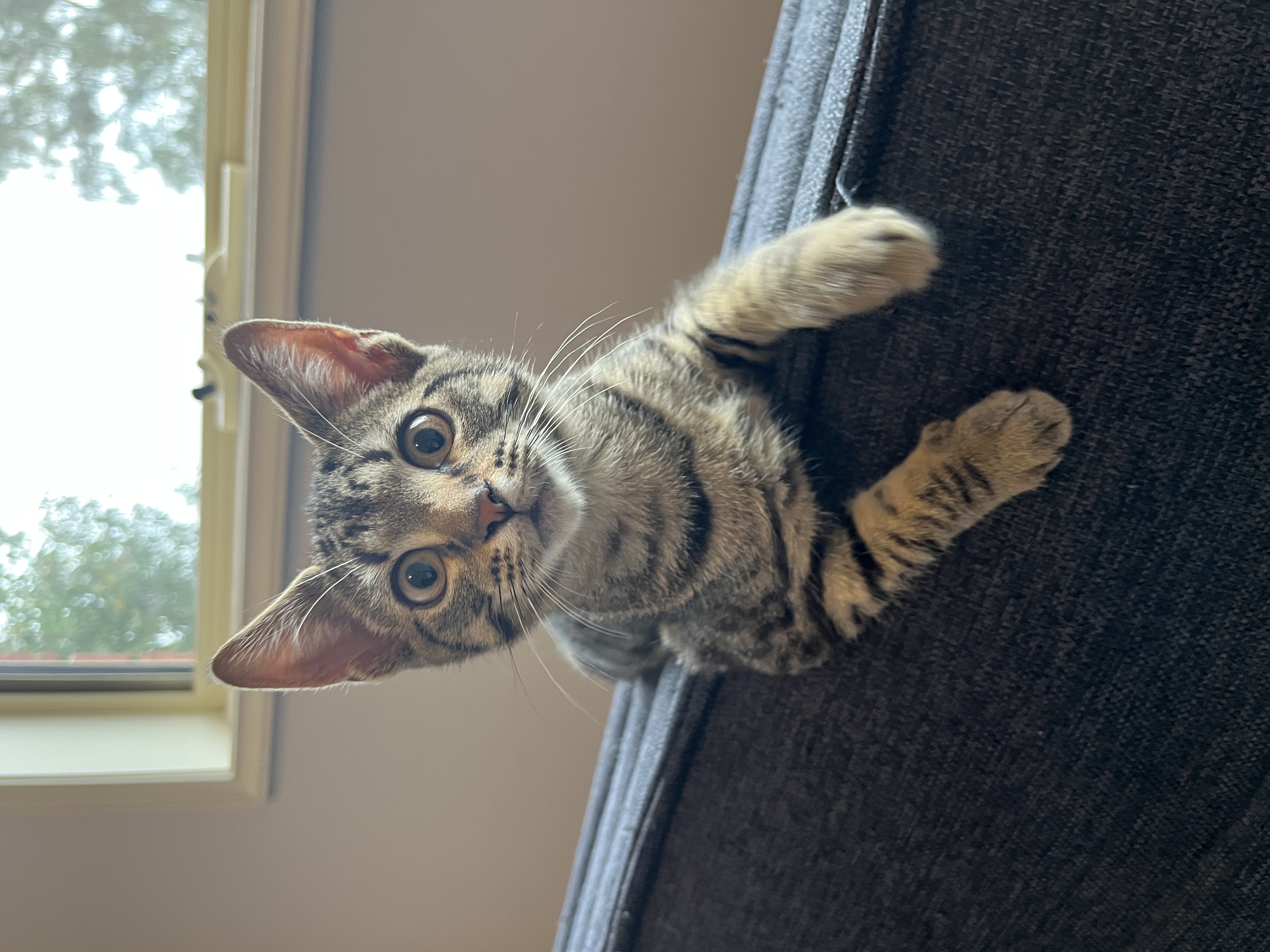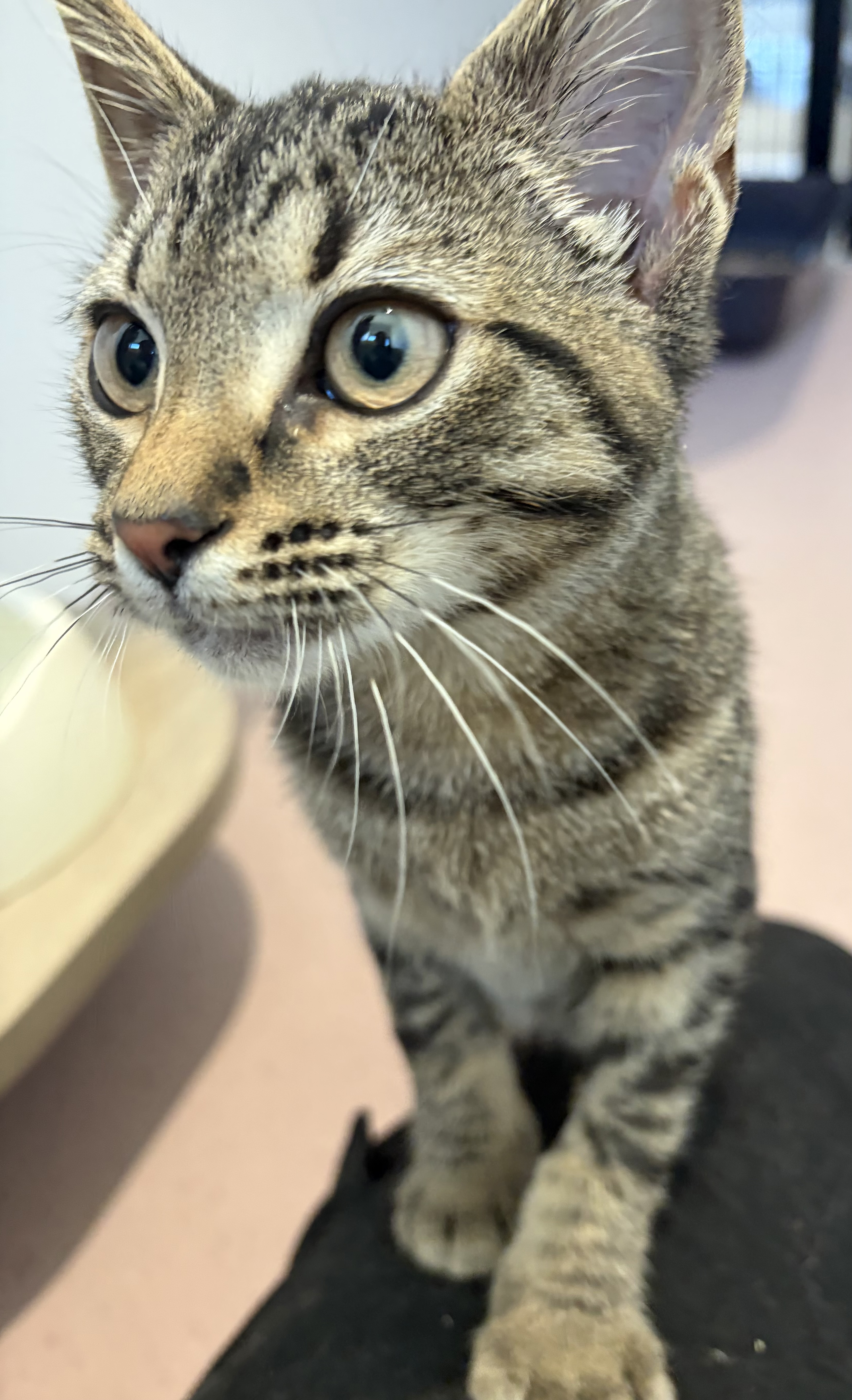 Hi there, future best friend! I’m super friendly and full of personality. Making people laugh is kind of my specialty, and I take that job very seriously. Whether I’m zooming around, pouncing on invisible enemies, or just giving you my curious little stare, I promise I’ll keep a smile on your face. But don’t worry, I’m not all mischief and mayhem. I’ve got a sweet, loving side too. I enjoy being around my humans, soaking up attention, and bringing a whole lot of joy into your home just by being me. If you’re looking for a kitten who’s playful, confident, hilarious, and full of life, I think we might be the purrfect match. I’ll bring the fun, you bring the love. |