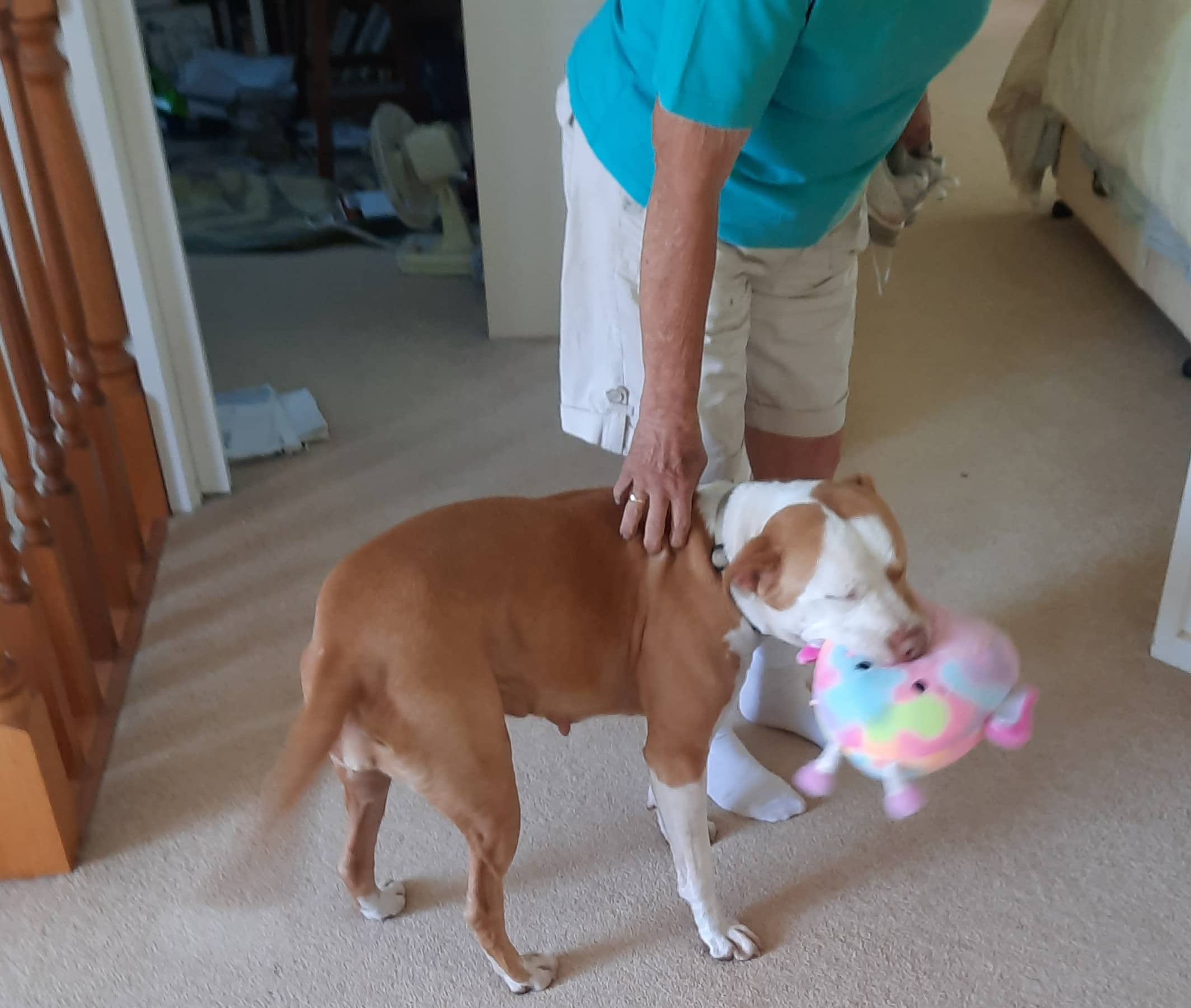One of my favourite things in the world is soft toys. Squeaky or not, I’m not fussy! I usually have one in my mouth or tucked beside me in bed, and I love carrying them around the house. I also enjoy picking up things left on the floor and carrying them proudly — especially shoes. Don’t worry, I don’t chew them! In fact, greeting people with a shoe when they come home is kind of my signature move. I even have my own special shoes for this job.