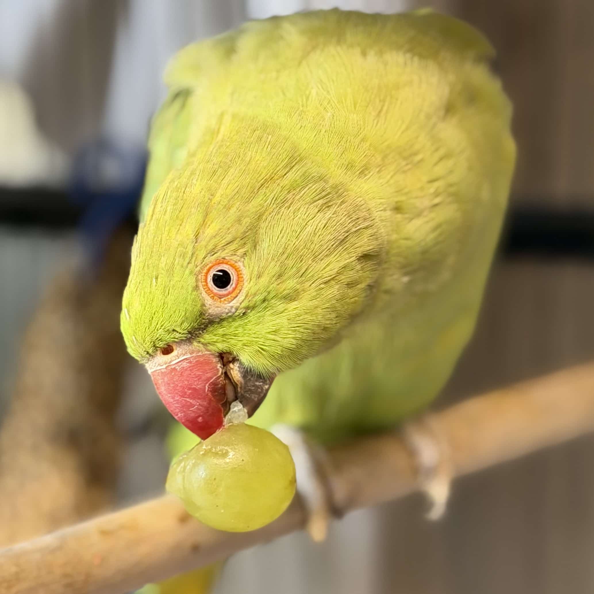 Regina was brought into the shelter after her previous owner could no longer care for her. Regina is not a hand tame bird and can be a bit of a sassy little bird! She is very confident and will let you know what she likes and what she dislikes. Regina will need an owner who has a prior experience with medium sized parrots (e.g. other Ringnecks, Princess Parrots, Cockatiels, Conures), her new owner will also need to give her some time to settle into her new home and will need time to get used to her new humans. Her new household should ideally be and a house with older kids or an all-adult Household. Regina is 2 years old and previously lived with another Indian Ringneck named Rosie (A132174), unfortunately they had to be separated due to fighting each other so in her new home she will need to be the only bird in the household (this may change as she gets older). She could live indoors in a large enclosure/cage or outdoors in a large aviary (Photos required at adoption). Sher is also a very energetic bird and will need lots of things to do (Enrichment activities e.g. Browse or cardboard boxes) plus lots of toys to keep her occupied. Currently on a pellet diet -more information at adoption.