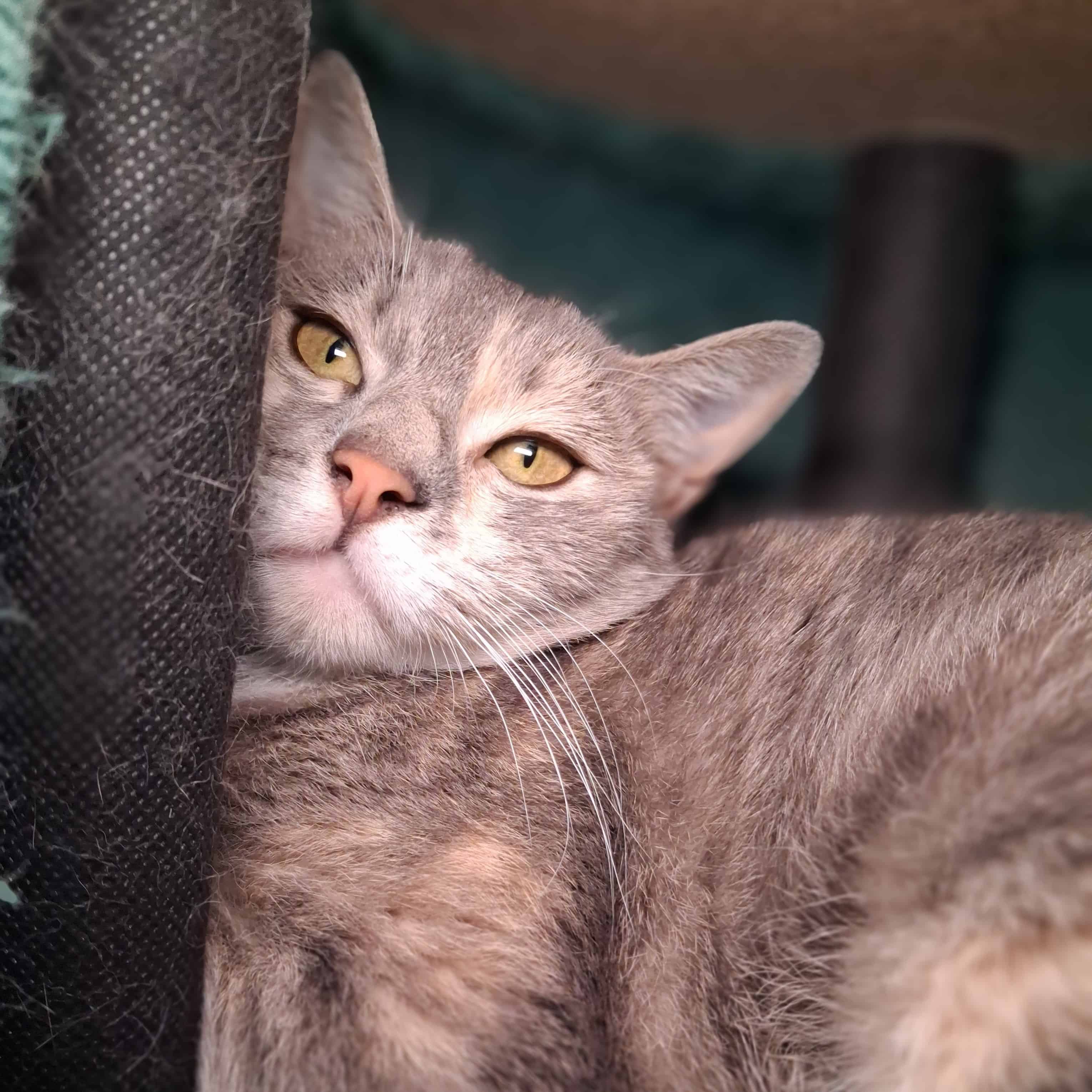 Still very unused to life around people, Miss Poppy will need a cat savvy person with time and patience while she adjusts to an indoor life. With all the unfamiliar sounds and smells people have in their homes, she will need slow introductions to everything. Poppy is a shy girl, but with patience and a valued treat, she will start to come out of her shell. With her foster carers, she was slowly learning to eat her favorite foods closer and closer to them, even taking food from their open hands and allowing deliberate pats around her head. A delectable cream treat goes a long way.