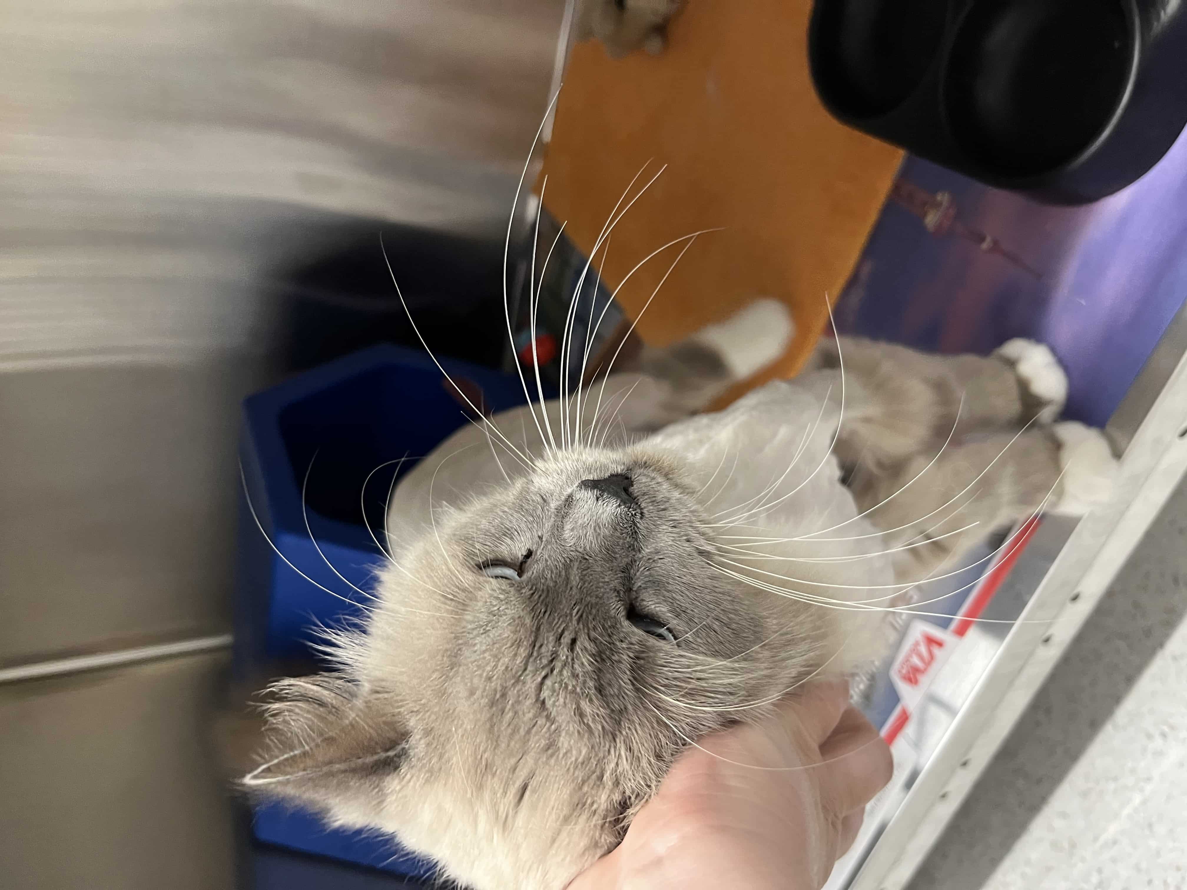 Meet Hercules, a handsome senior Ragdoll boy with a gentle heart and a calm, steady presence. With his soft, plush coat and soulful eyes, he’s the kind of cat who brings quiet warmth to any home. Hercules enjoys spending his days lounging in cozy spots, observing the world around him, and soaking up affection on his own terms.