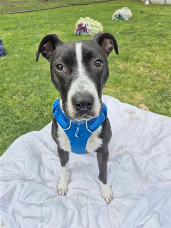 Meet Aria! A 9-month-old Staffy sweetheart with speedy little paws, full-body wiggles, and a heart that shines for gentle humans.