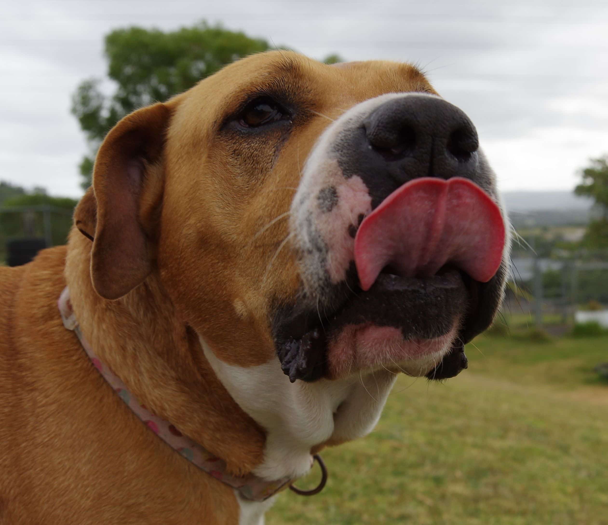 Honey is gentle and friendly but can be a little boisterous in her excitement, especially during play. For that reason, she’s best matched with families with children aged 6 years and older who are confident around large dogs.