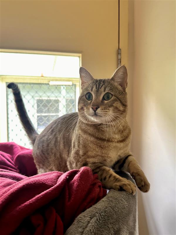 I have bursts of energy and absolutely love to hunt... or rather, play! I enjoy interactive toys, puzzle feeders, cardboard boxes and anything that lets me use my brain and body. I would be happiest in a home with a secure outdoor cattery or catio, where I can safely explore and watch the world go by.