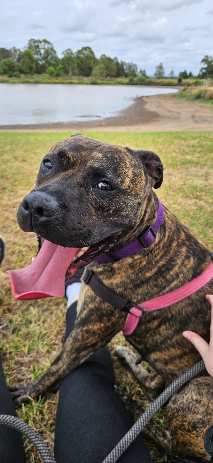 Karma is a beautiful 4-year-old American Staffordshire Terrier with a true heart of gold. This happy girl absolutely loves life and brings joy wherever she goes. You’ll often find her snuggled up close to her favourite humans, soaking up affection, or happily racing through the sprinkler on a sunny day.
