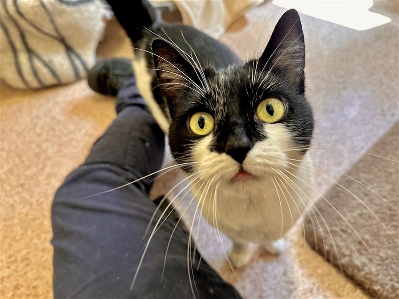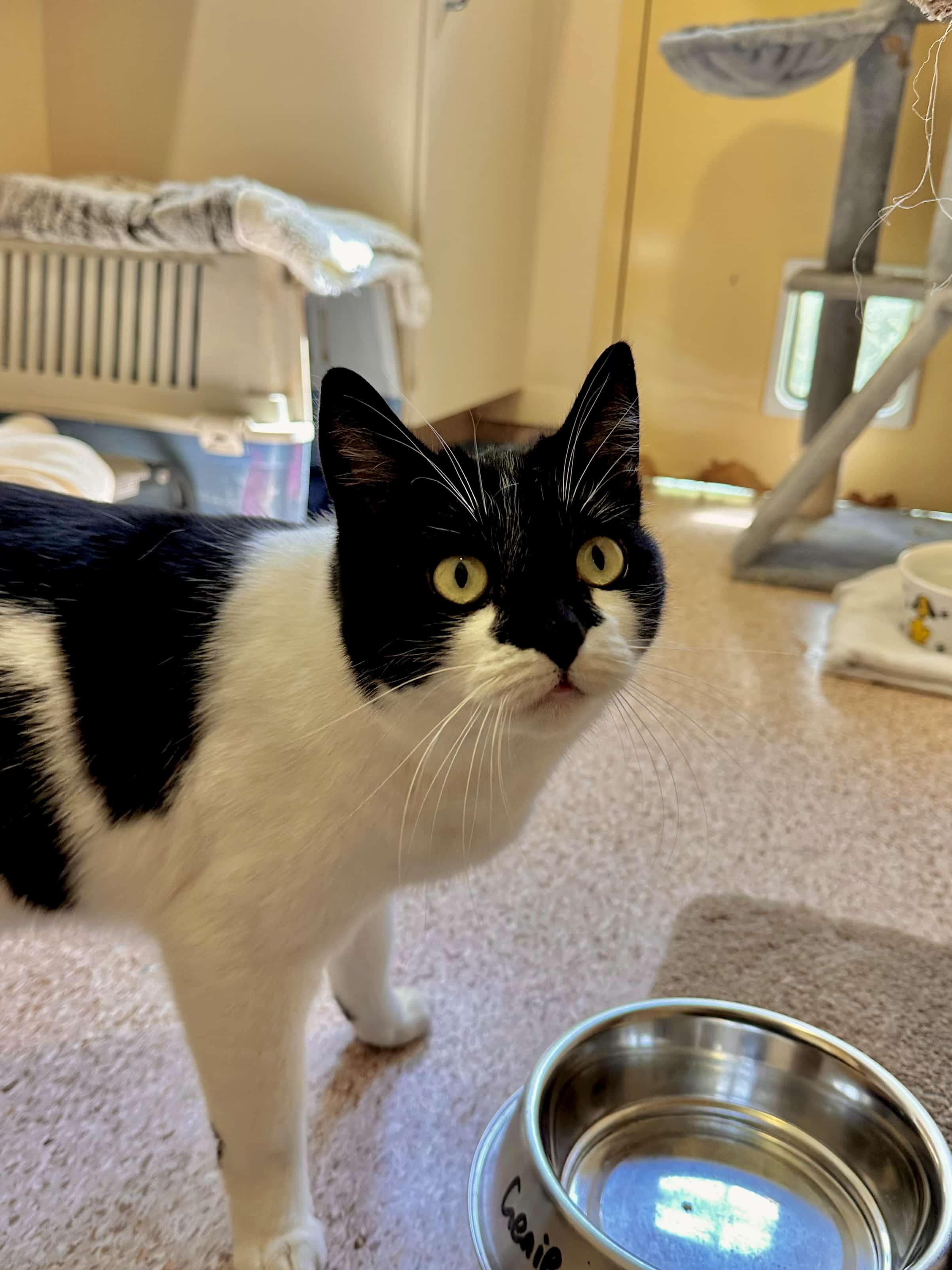 I can be a little shy and reserved at first, so I’m looking for someone who understands that I need time and patience to feel safe. Once I trust you, I’m incredibly affectionate – I love gentle cuddles and being close to my humans. Because I startle easily, I’d be happiest in a quiet, calm home. Loud noises and sudden movements make me nervous, so I’d prefer a house without young children – kids over 12 who can respect my space would be okay. One thing that’s really important to me is having access to both the indoors and outdoors.