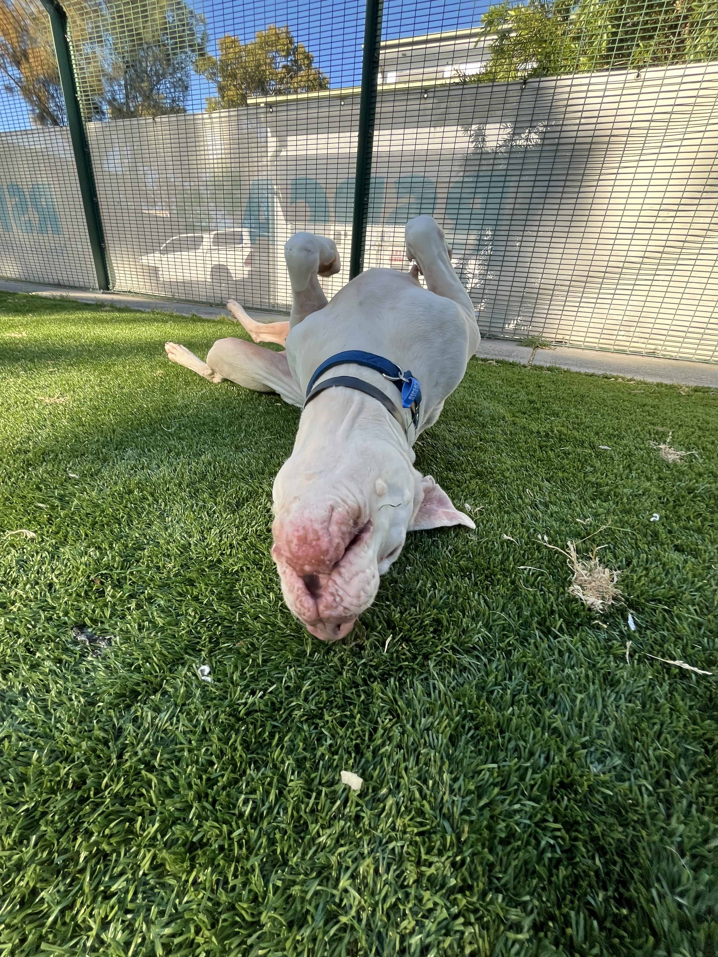 This gentle girl is all about life’s quieter pleasures—slow mornings, peaceful walks, and cuddling up on the couch with her favorite human. With a calm, easygoing nature, Crumpet would thrive in a relaxed home with a steady routine, making her a wonderful match for someone who works regular hours or a senior looking for a mellow companion. She’s already a great listener, eager to please, and requires minimal training. Crumpet has shown minimal interest in other doggies and is happy to do her own thing, if a dog is too close to her personal space she is good at communicating she would like distance and therefore will need a family home with no other doggies.