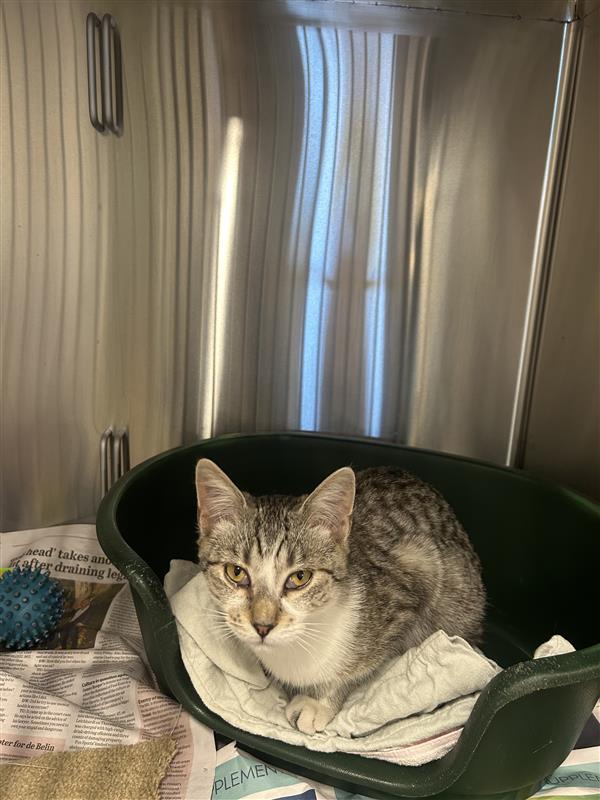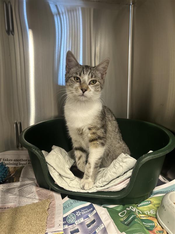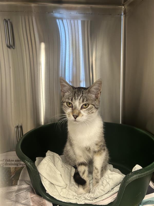 Hi, I’m Pickles, a 4-month-old male Domestic Short Hair kitten. I’m small now, but my curiosity is huge. I bounce, pounce, and zoom around the room, turning every string and shadow into a grand adventure. After I’ve burned off some energy, I’ll purr your ear off while I snuggle in your lap or beside you in bed. I’m a high-energy guy who thrives on play, then loves a quiet moment of affection. I’m best with kids aged 6 and up, so a family with gentle, patient hands would be perfect. I do best in a calm, quiet home where I can grow confident and settle in at my own pace. I’ll need a veterinary consult prior to adoption, so please plan a quick vet visit to start our journey on the right paw. If you’re ready for a playful, affectionate companion who will grow with you, I’m Pickles and I can’t wait to meet you.