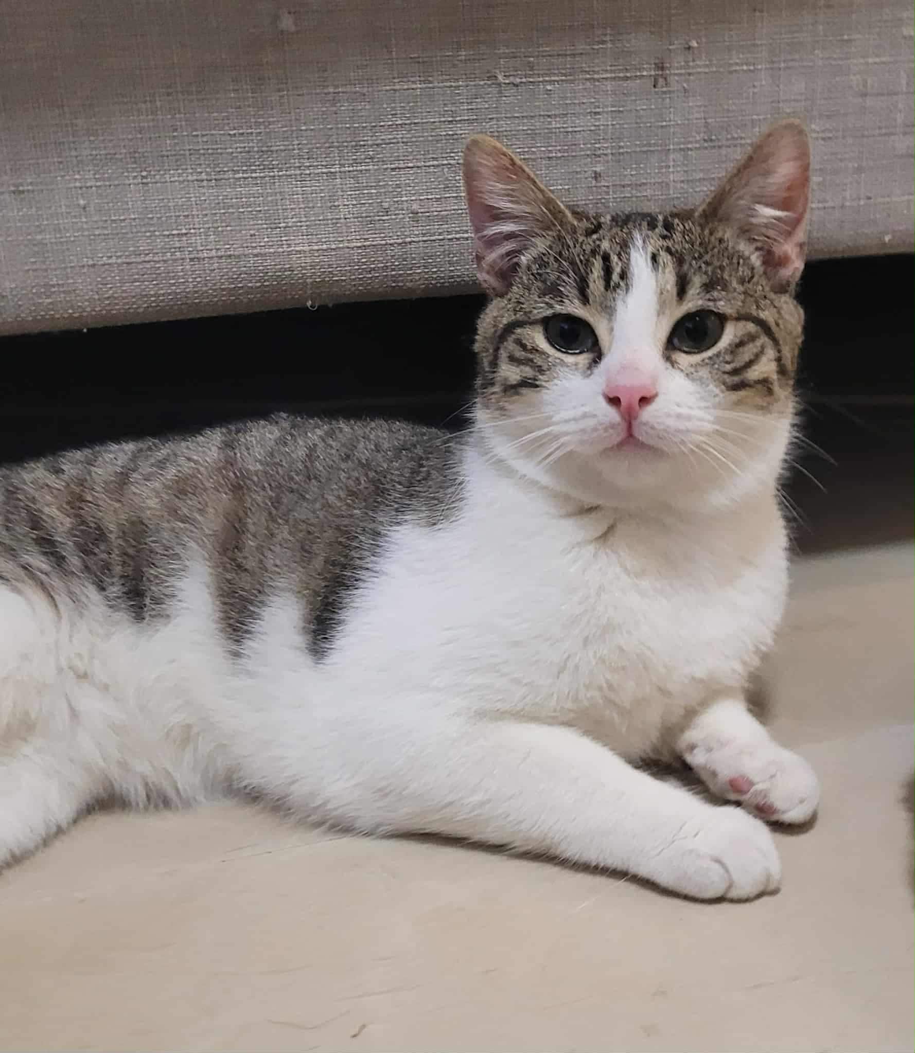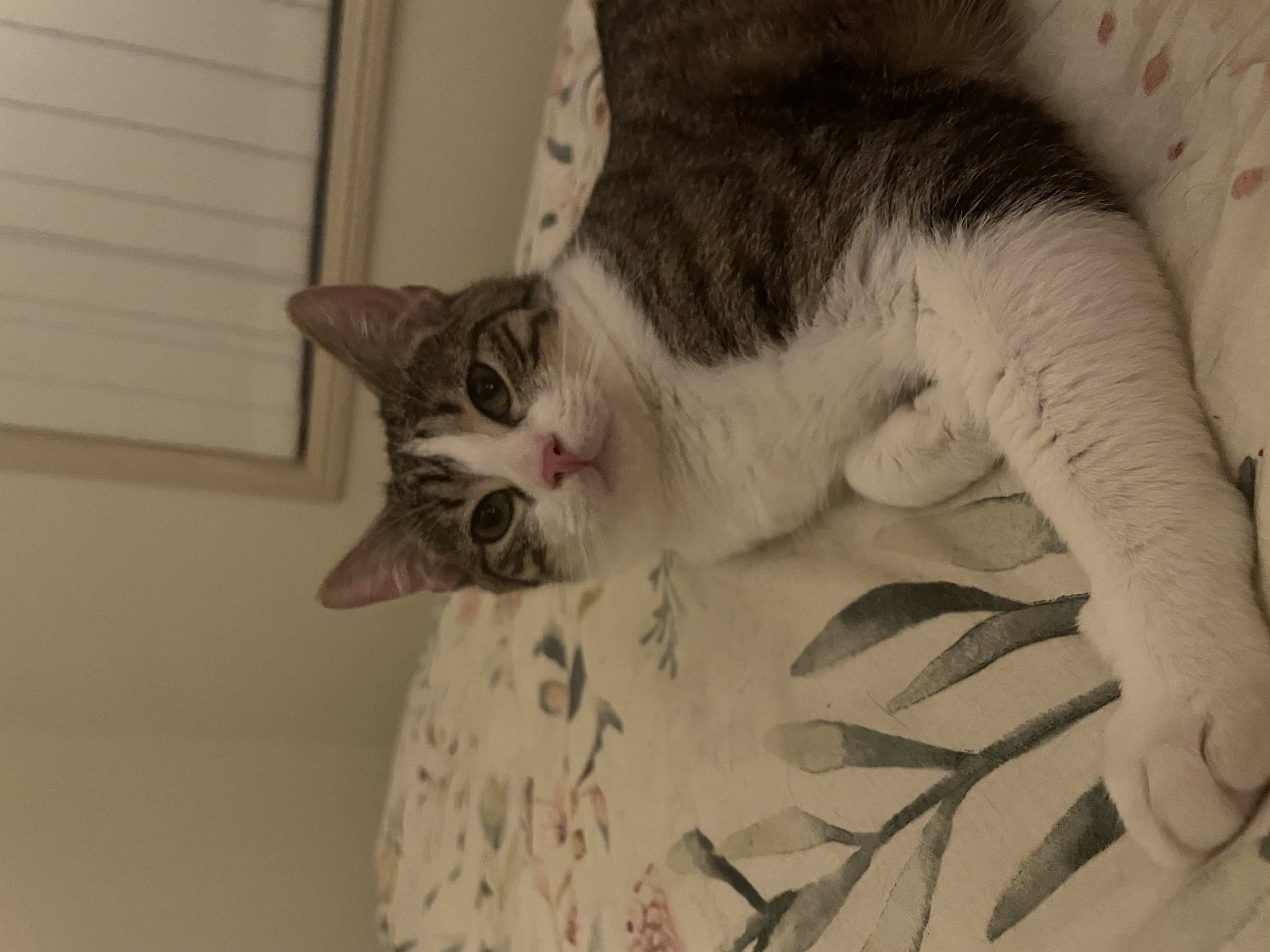 Hi, I'm Theodore. Theo is a lively 6-month-old kitten who has made remarkable progress from his once fearful nature to becoming a confident and playful little companion. My energy level is high—I love chasing feather wands, zooming up cat trees, and exploring new spaces. His boundless energy keeps him active throughout the day, eagerly chasing toys and exploring his surroundings with curiosity. Despite his spirited personality, Theo transforms into a loving snuggle buddy at night, offering warmth and comfort to those around him. He does best in a quiet, calm home where I can settle in and trust my people. If you're looking for a playful, affectionate friend who will fill your days with whiskers, purrs, and cozy naps, I could be the one. I’d love to meet you and see if we click!