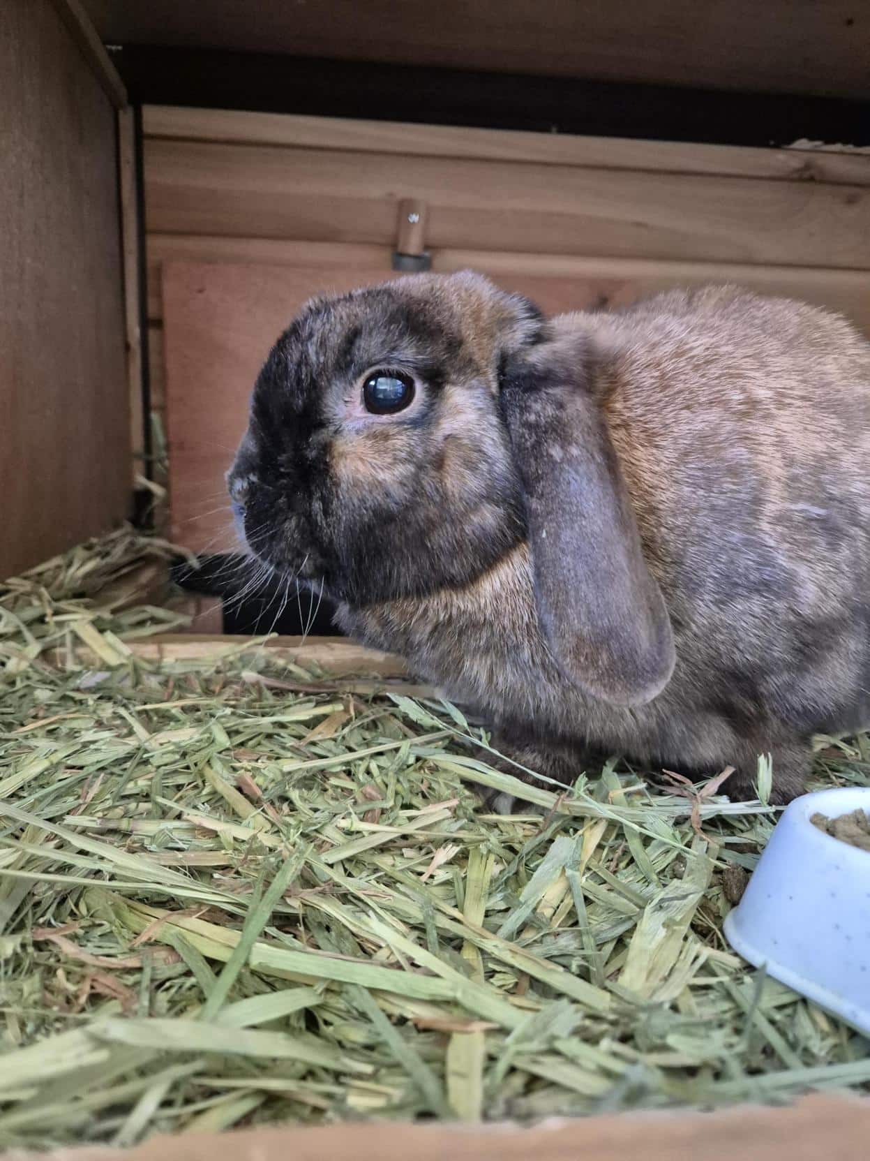 I love lounging in a sunny corner, nibbling hay, chowing fresh greens, and exploring a safe, roomy space. I’m happiest with predictable routines, gentle hands, and patience. I get along well with adults and older kids who know how to treat rabbits with care. I’m observant and social, and I’ll happily hop over for a soft pat or a friendly nose bump. I enjoy a good grooming session and appreciate a tidy litter box. To keep me healthy and happy, I need a spacious enclosure, daily exercise, and enrichment like tunnels and safe chew toys.