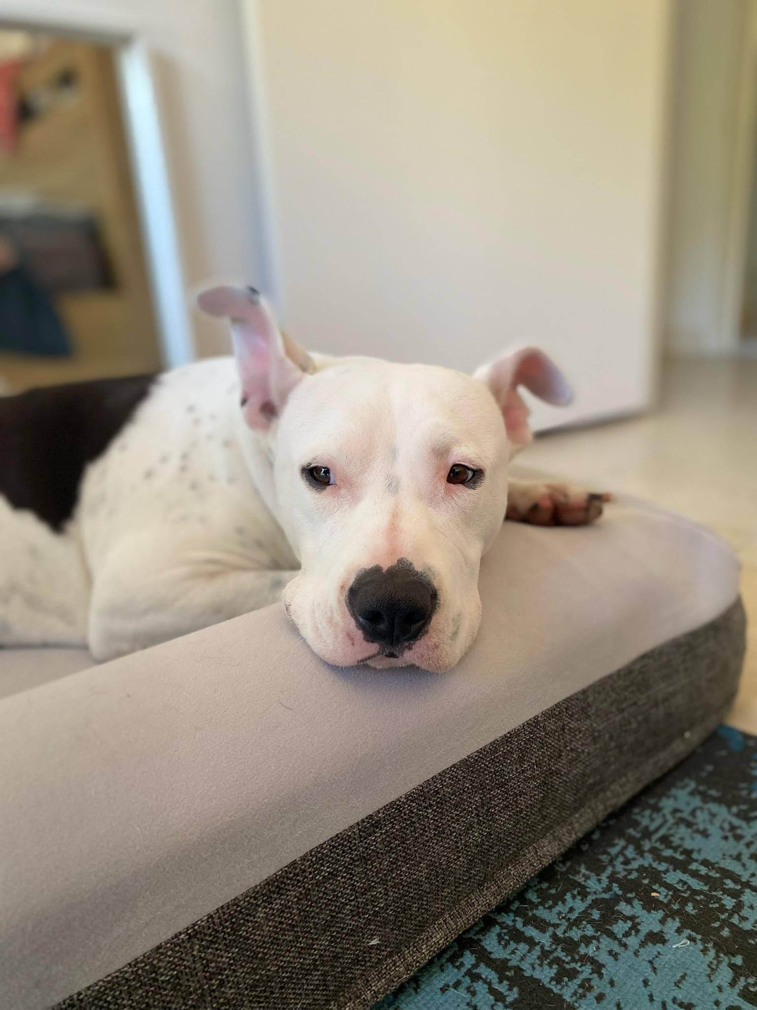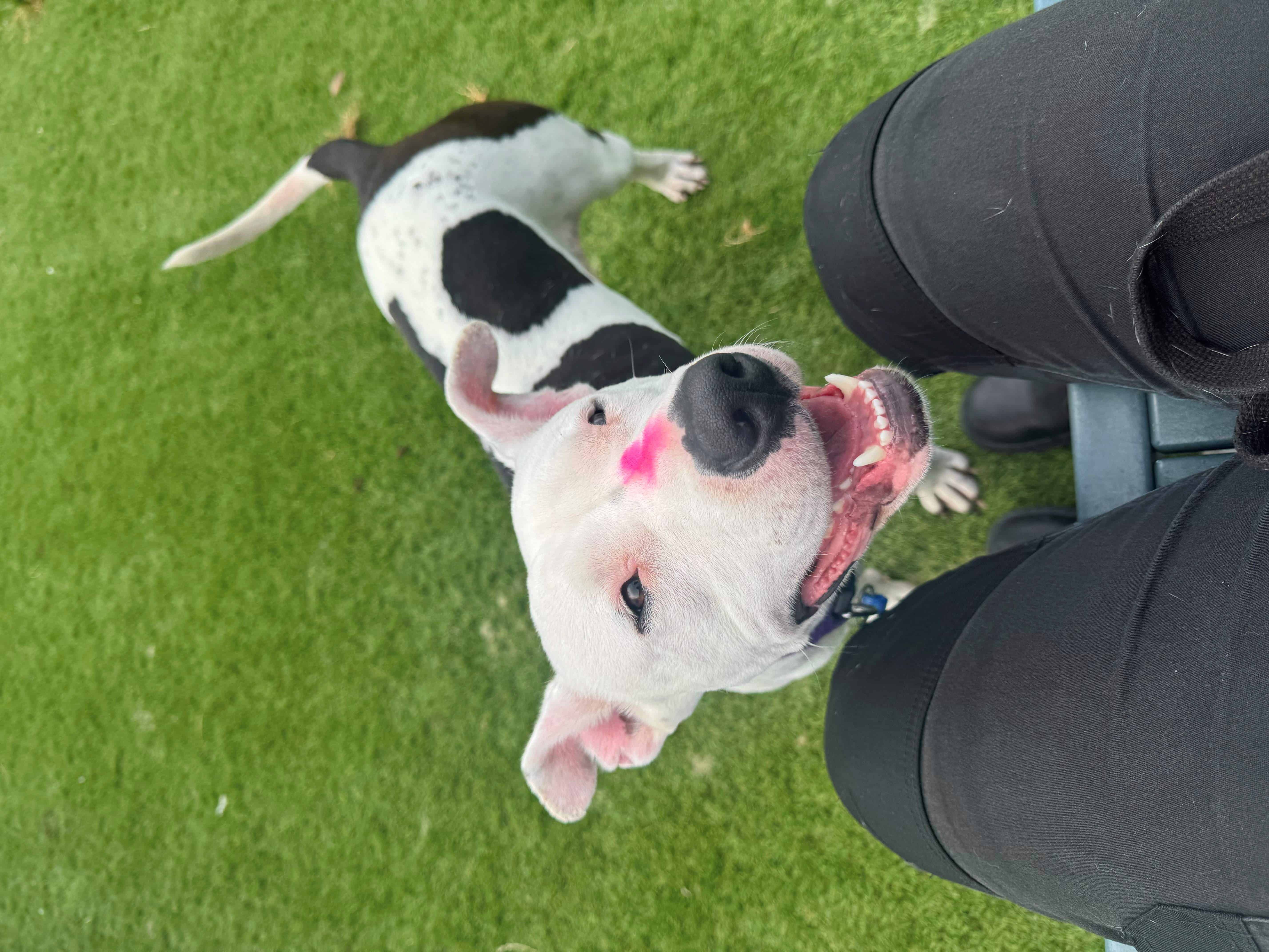 Hey, I’m Moo Moo. I’m a 2-year-old American Staffy with a squishy face, a good heart, and just the right amount of sass. I’m the kind of dog who’ll keep you company through lazy Sundays, snack runs, and everything in between. Basically, if you’ve got good vibes and a comfy couch, we’re off to a strong start. Let’s talk about what I’m looking for — because I do have a few non-negotiables. First up: indoor and outdoor access. I’m not an “outside only” kind of girl. I want to be where the people are — inside for naps and cuddles, and outside for sniffing, sunbaking, and the occasional zoomie. Balance is key, and I like having options. Next: kids. I’m better suited to a home with children aged 12 and up. I’m a friendly girl, but I’m solid, and my idea of affection sometimes includes full-body enthusiasm. I don’t mean to knock anyone over, but the little ones are just a bit too easy to accidentally squish. Dog friends? I can be social, but I definitely prefer a proper introduction before committing to any long-term friendships. So if you’ve got another dog at home, I’ll need to meet them first to make sure we’re a good match. I like to suss out the energy and see if we click. And finally: I need someone who’s home often, at least to start. I don’t love being left alone during big transitions — I do best when I have someone around while I settle in. Once I feel safe and secure, I’m happy to lounge around and do my thing. But in the beginning, I’ll need that extra bit of support. Now that that’s out of the way — personality-wise, I’m pretty chill. I love a sun nap, I’m a big fan of snacks, and I fully believe that wherever you are is where I should be. I’ve got a playful streak, sure, but I’m also a champion snuggler and a solid co-worker if you work from home (just don’t expect productivity from me). So, if you’re after a down-to-earth, affectionate Staffy girl who tells it like it is and gives great side-eye — we might just be a perfect match.