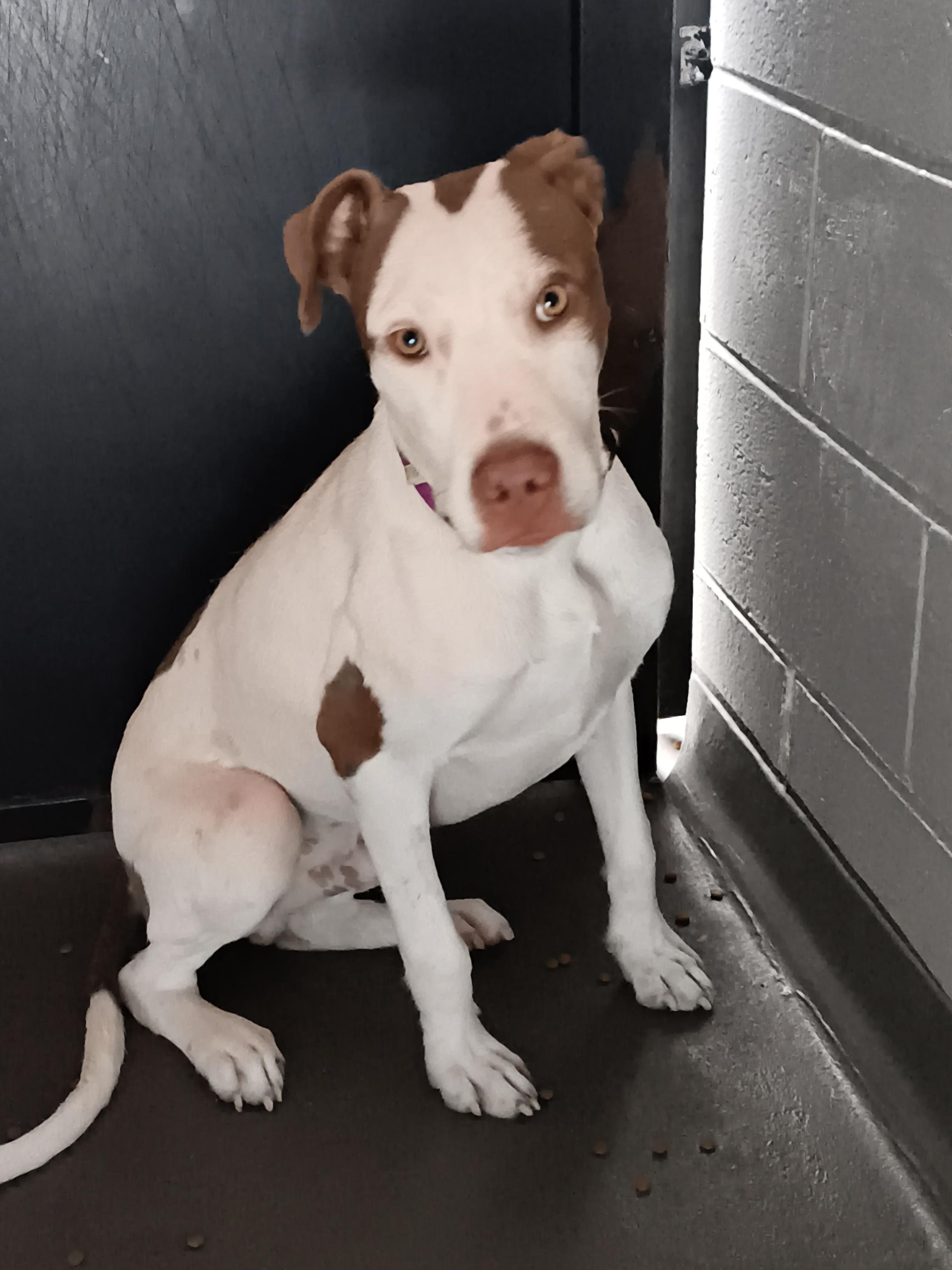 I’m gentle and sweet, but new things—especially sudden noises like cars or trucks going by—can make me nervous. Because of this, I’d do best in a calm, peaceful home where I can settle in at my own pace. I love to chew and lick, which helps me decompress, and I’m hoping my new family can give me safe things to enjoy while I learn about home life.
