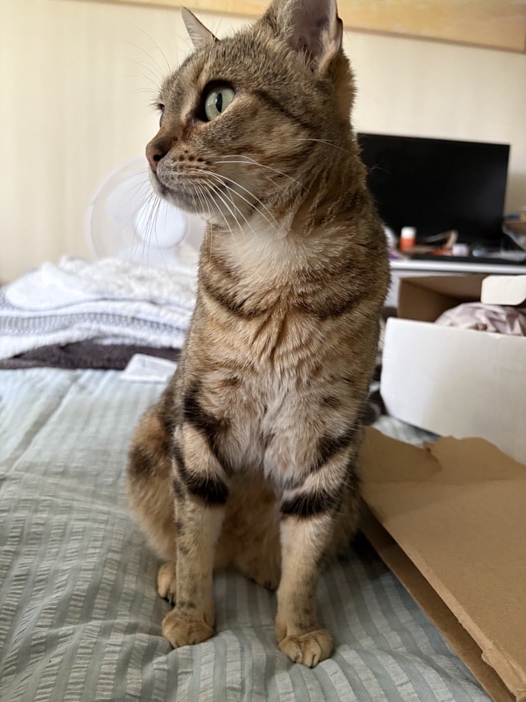 I don't mind other cats, as long as they can respect my space while I settle in, so if you have a calm and friendly cat who's looking for a new friend, that would be OK with me!