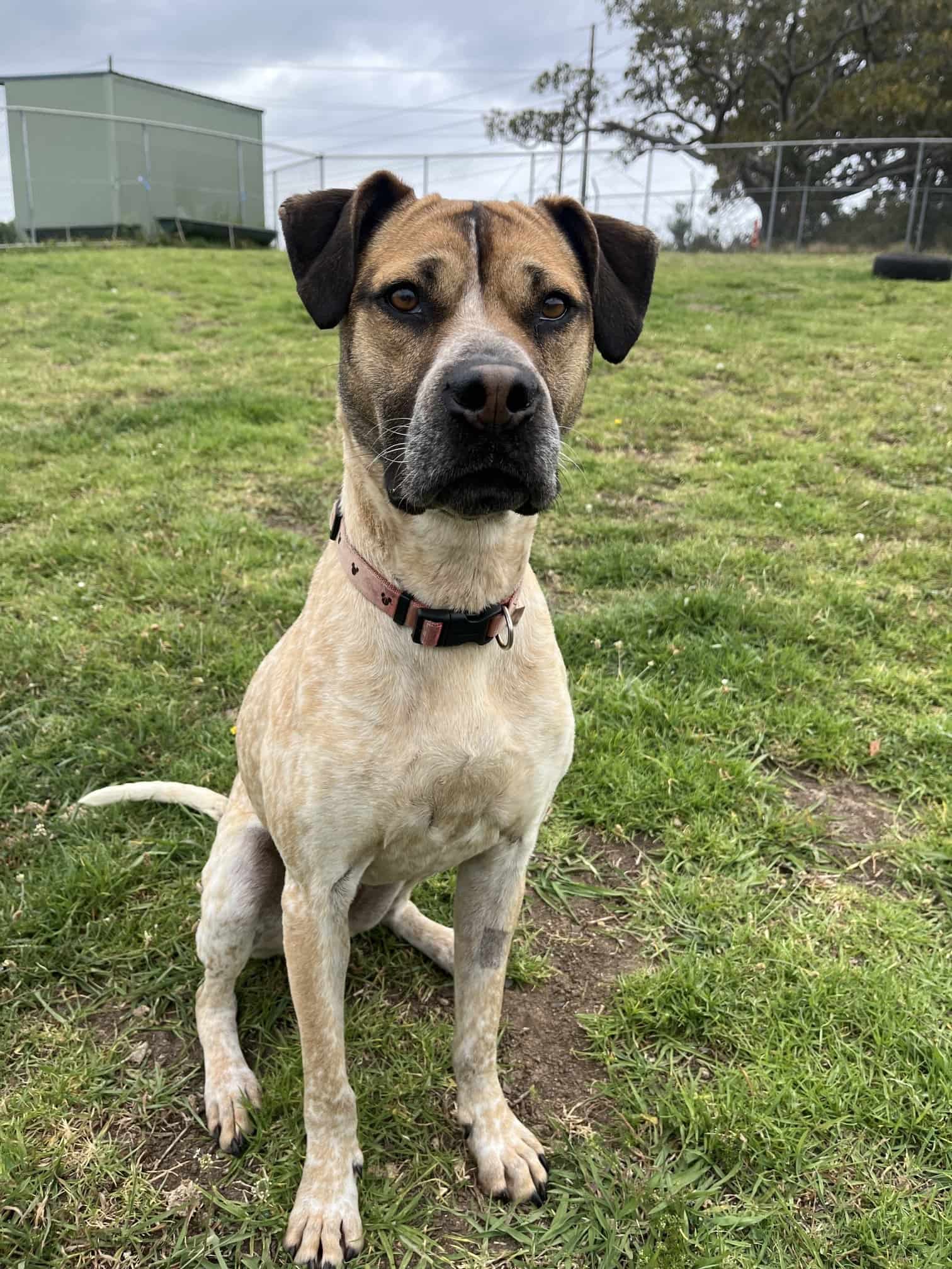 Hi, I’m Koda, a female Mastiff cross. I’m a gentle giant—calm, loyal, and affectionate with my people. I’d love a home with someone who works average hours; I thrive on a predictable routine and a comfy spot to snooze after our adventures. Energy level: Moderate. I’m happiest with steady walks, relaxed play, and lots of cuddles. Best with children aged 12 years and up—I’ll greet respectful teens with a calm, steady vibe. Training and behavior needs: I adore daily opportunities to learn about life and meet other dogs. Mental enrichment keeps me sharp and happy. Compatibility with other dogs: I can be selective. I do best with careful introductions and aren’t keen on off-leash dog parks. Compatibility with other pets: No known history of issues, so I’m adaptable in the right home with supervision. If you’re seeking a devoted, needful friend who loves gentle affection, enrichment, and a steady routine, I’m your girl. I can’t wait to meet you and become part of a loving family. Please reach out to learn more and arrange a meet-and-greet.