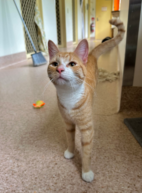 I’ve grown up a bit here at the shelter, and before coming to the RSPCA it’s thought I didn’t have much interaction with people. Because of that, I’ve been learning everything at my own pace. The lovely staff here have helped me so much by giving me choices, respecting my need for touch consent, and showing me love from a distance. Thanks to their patience, I’ve recently turned a new leaf and started approaching them on my own terms to show my affection back.