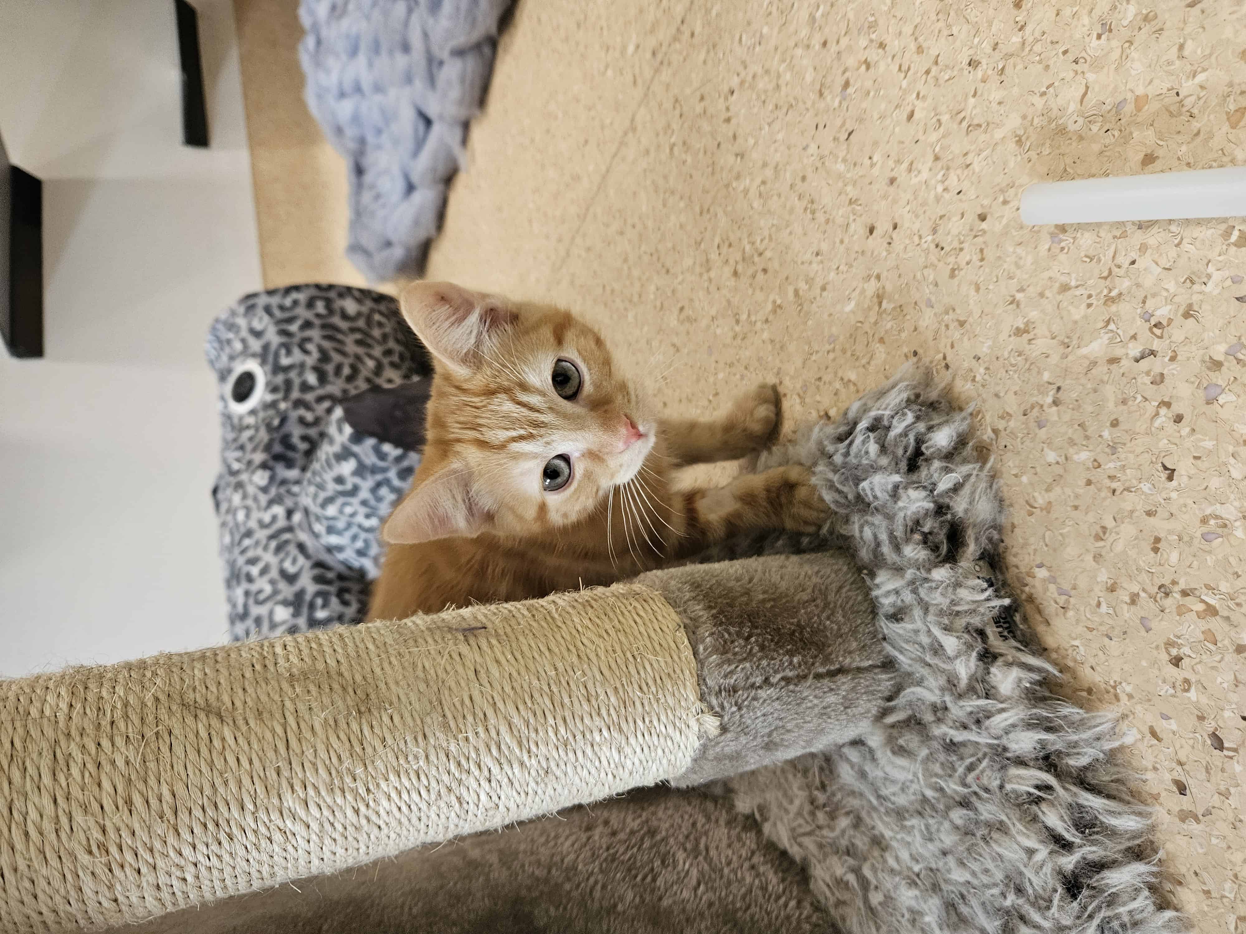 I have no known child-related issues, so I’m likely to fit well with a family that’s gentle and patient with a growing kitten. I’m still learning manners, but I’m eager to please and quick to snuggle up when you’re near.