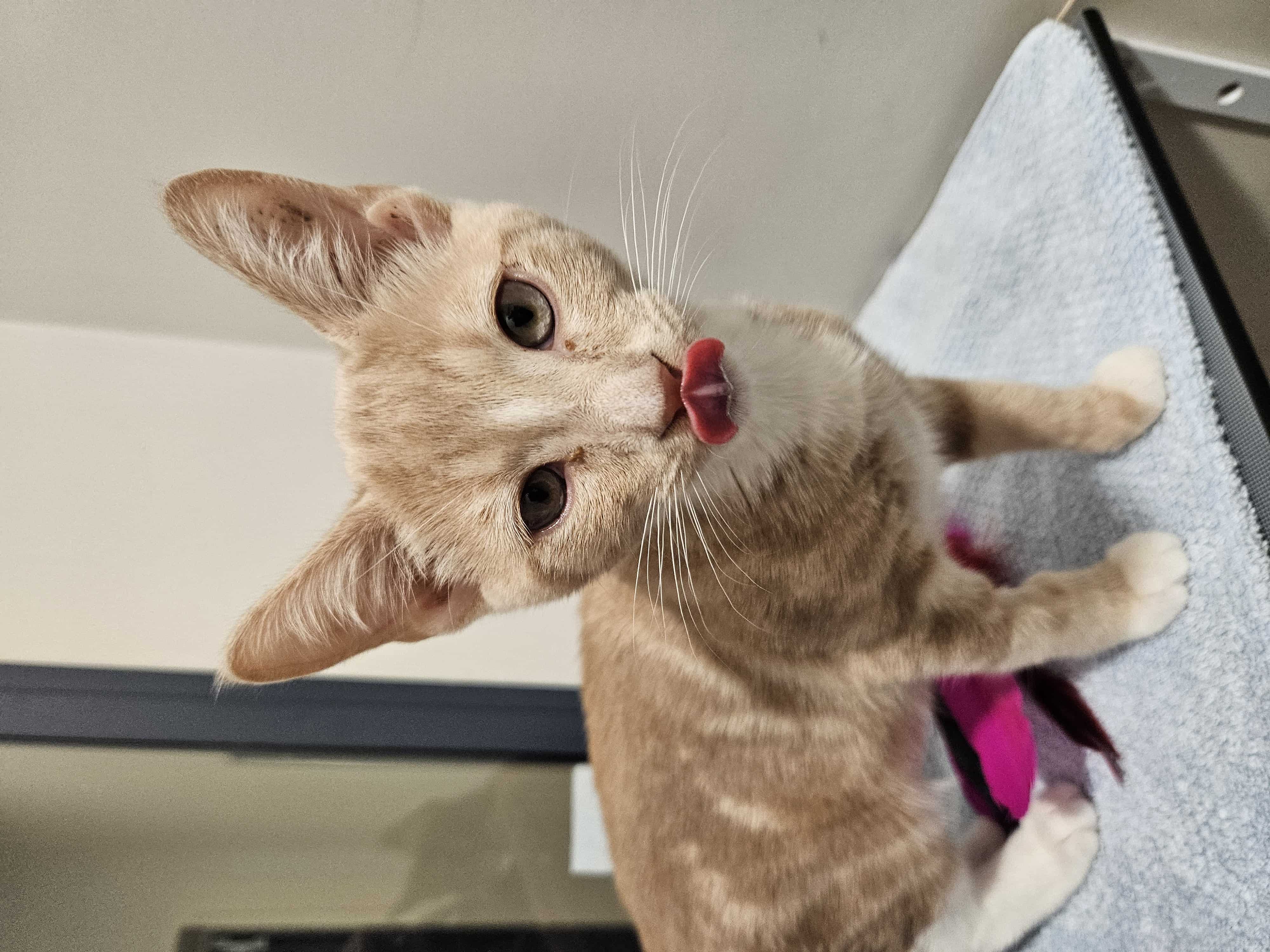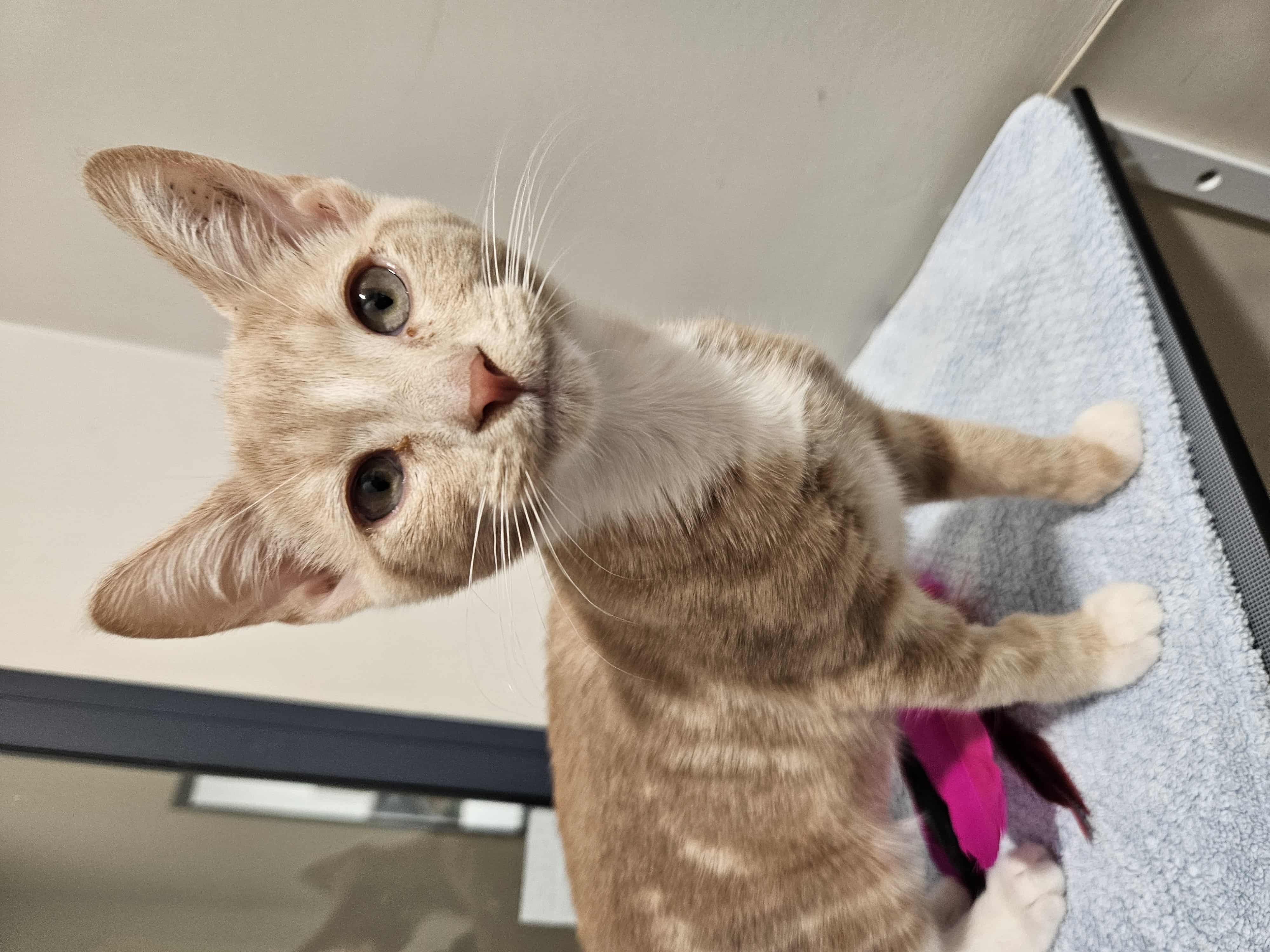 I’m friendly, easygoing, and eager to make new friends. I have no known child-related issues, so I’d be happy in a home with respectful kids or adults who enjoy gentle play. I’m still learning the ropes, but I’m patient, responsive, and quick to purr when you tell me I’m loved.
