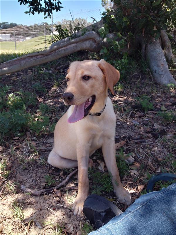 I'm a young energetic Labrador puppy who has not had the best start to life; I was kept in a backyard and have not yet seen the big world so I'm looking for owners who are willing to slowly introduce me to all the big and amazing things around me. I may come off as confident, but really, I'm just a bit overwhelmed, I need routine and structure, plenty of sleep, chances to learn and form bonds. I enjoy meeting other calm friendly dogs while I'm in the shelter, but I can be unsure if they get too close, so I'd be suited to a home with an older calmer dog to show me the ropes. If you have experience with high energy puppies and are looking for a new friend to share your life with, consider taking a look at me!