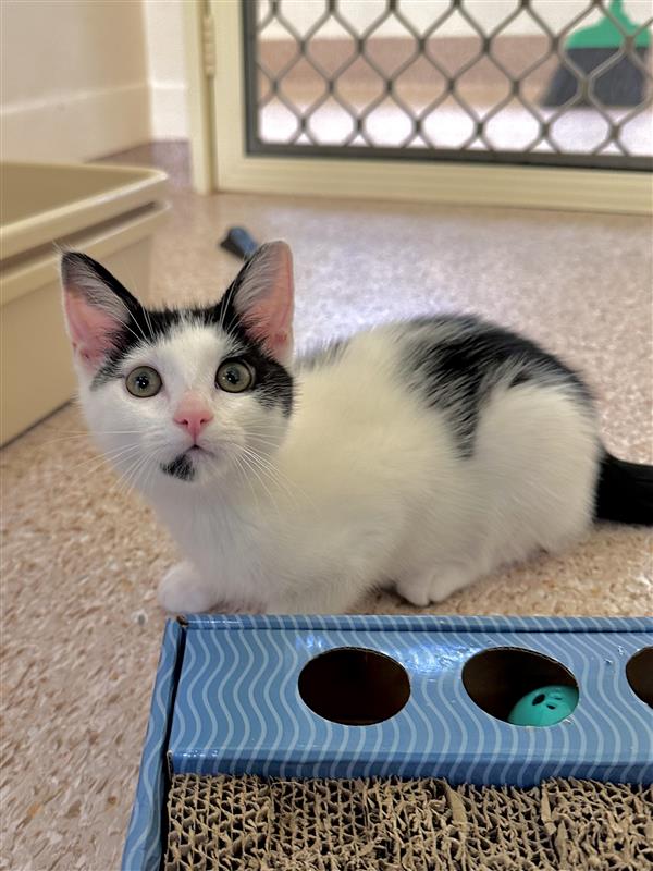 I am a tiny bundle of joy with a delightfully bubbly personality. At just two months old, I already know how to win hearts wherever I go. My human friends compliment me all day long for being so playful, loving and confident. I love people and will happily soak up any attention, cuddles and gentle pats when I ask for them. I settle into new spaces quickly and handle new experiences like a pro!
