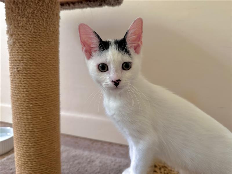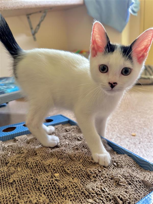 I’m still a baby, so I’m learning all my important kitten skills—like using the litter box (already a pro), playing nicely, and perfecting my “please love me forever” face. I do great with gentle humans and would probably enjoy a furry friend who likes to play as much as I do.