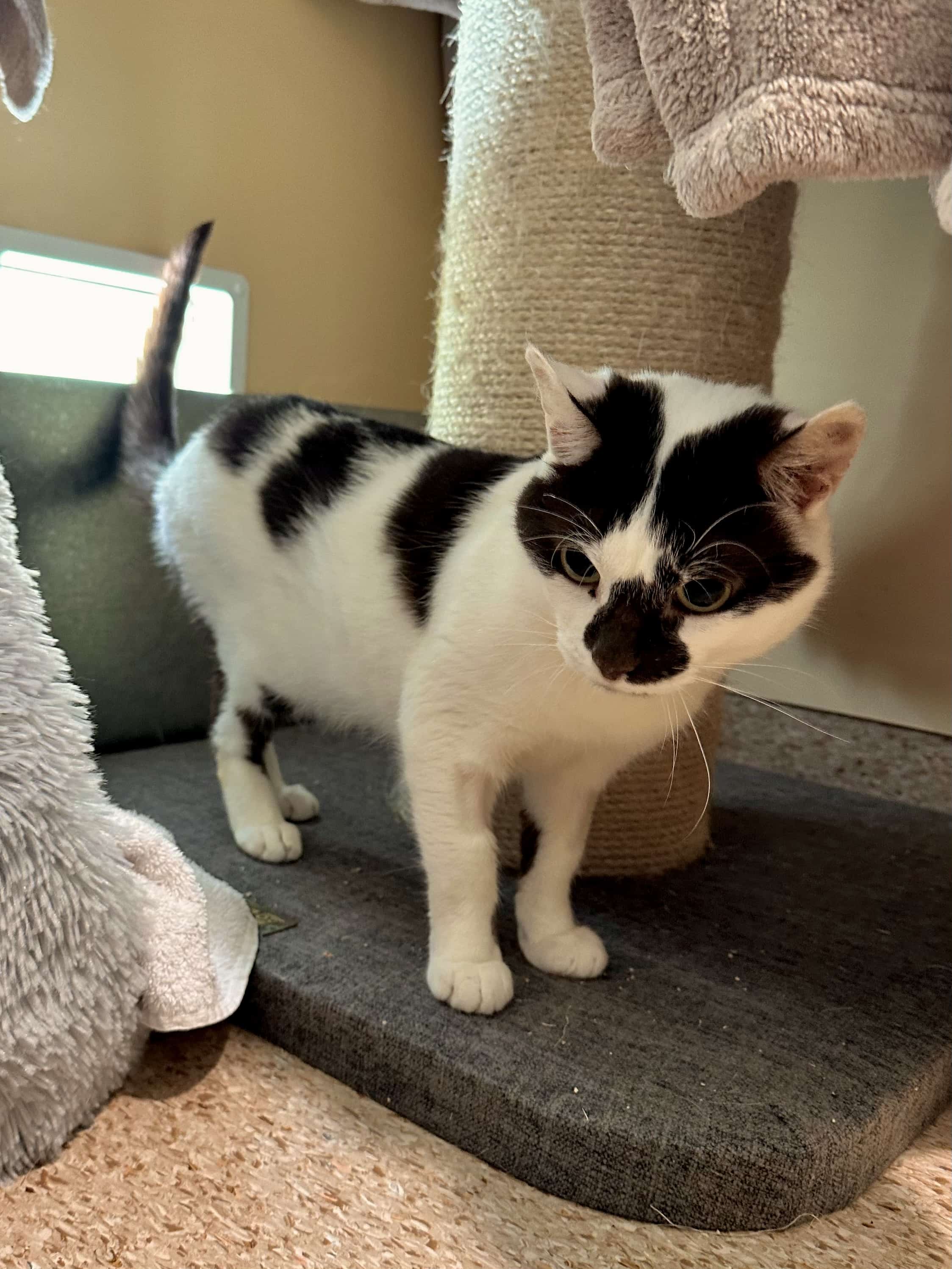 Because of my sensitive nature, I’d do best in a home without children under 6, and ideally with someone who understands cats like me or is willing to learn. A patient, kind human who lets me set the pace would be my perfect match.