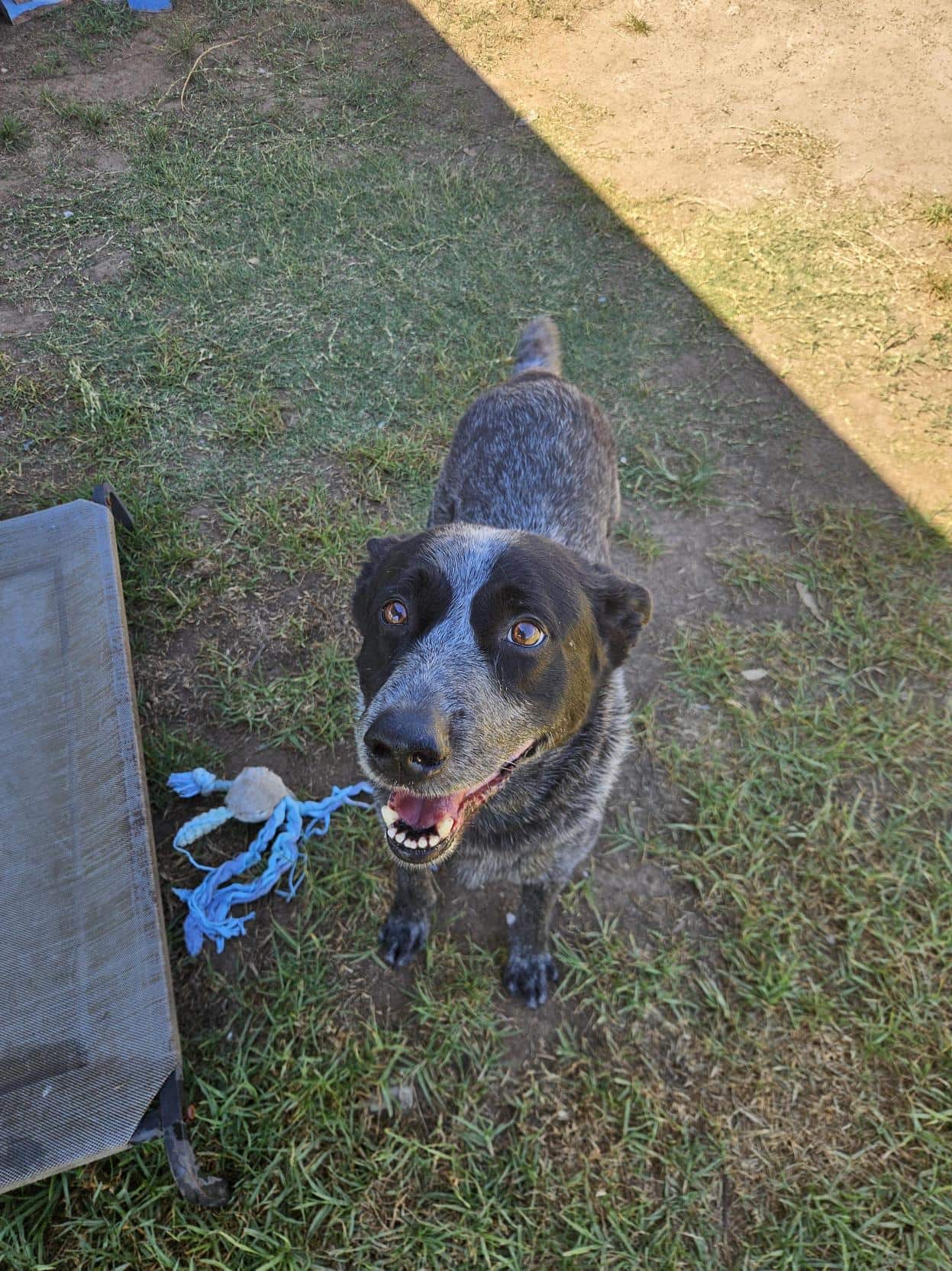 Odie is a 9-year-old blue Australian Cattle Dog with a thoughtful soul and a playful streak. He’s reached that lovely stage of life where he enjoys a calm routine, familiar people, and a good toy to keep his mind busy.