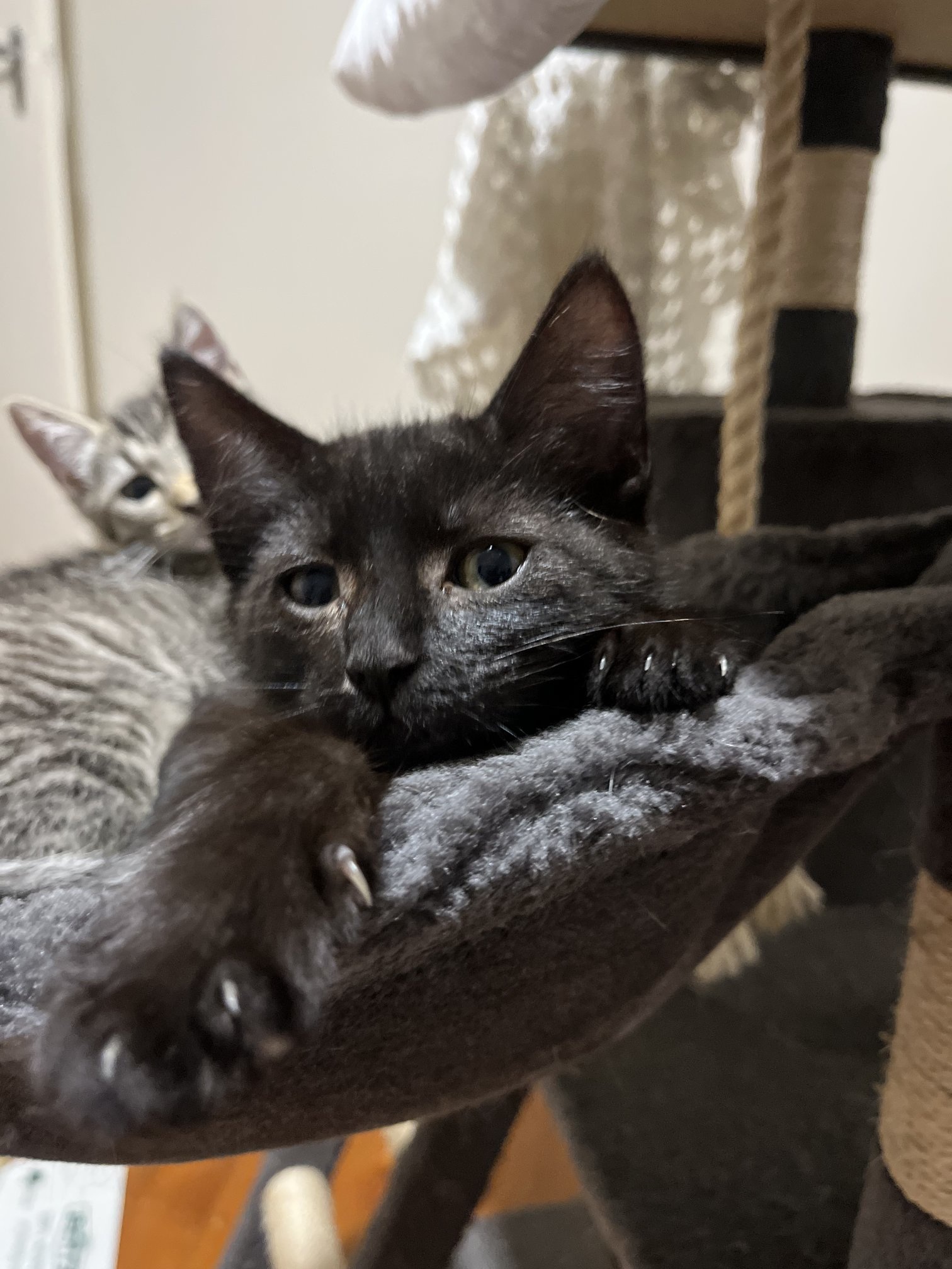 Hi, I’m Manny. I’m a male Domestic Short Hair kitten, currently 2 months old. My energy level is average, so I’m equally happy snoozing in a sunbeam and chasing a fluttering feather during playtime. I’m curious, affectionate, and I’ll purr as soon as you scoop me up for a cuddle. I love soft pets, gentle brushing, and exploring new corners of the home. Best with Children Aged: No known child related issues. I’m learning my manners and am excited to grow up in a loving, patient home. I’d do best with a family that enjoys a calm, steady routine but still wants daily kitten mischief and fun. I’m ready to be your loyal companion, to nap beside you, greet you at the door, and grow into a confident cat. If you’re seeking a sweet, eager-to-please little friend who will bring warmth and smiles, I’m Manny and I can’t wait to meet you. Please share my profile with someone who’s ready to open their heart and home to a tiny best friend.