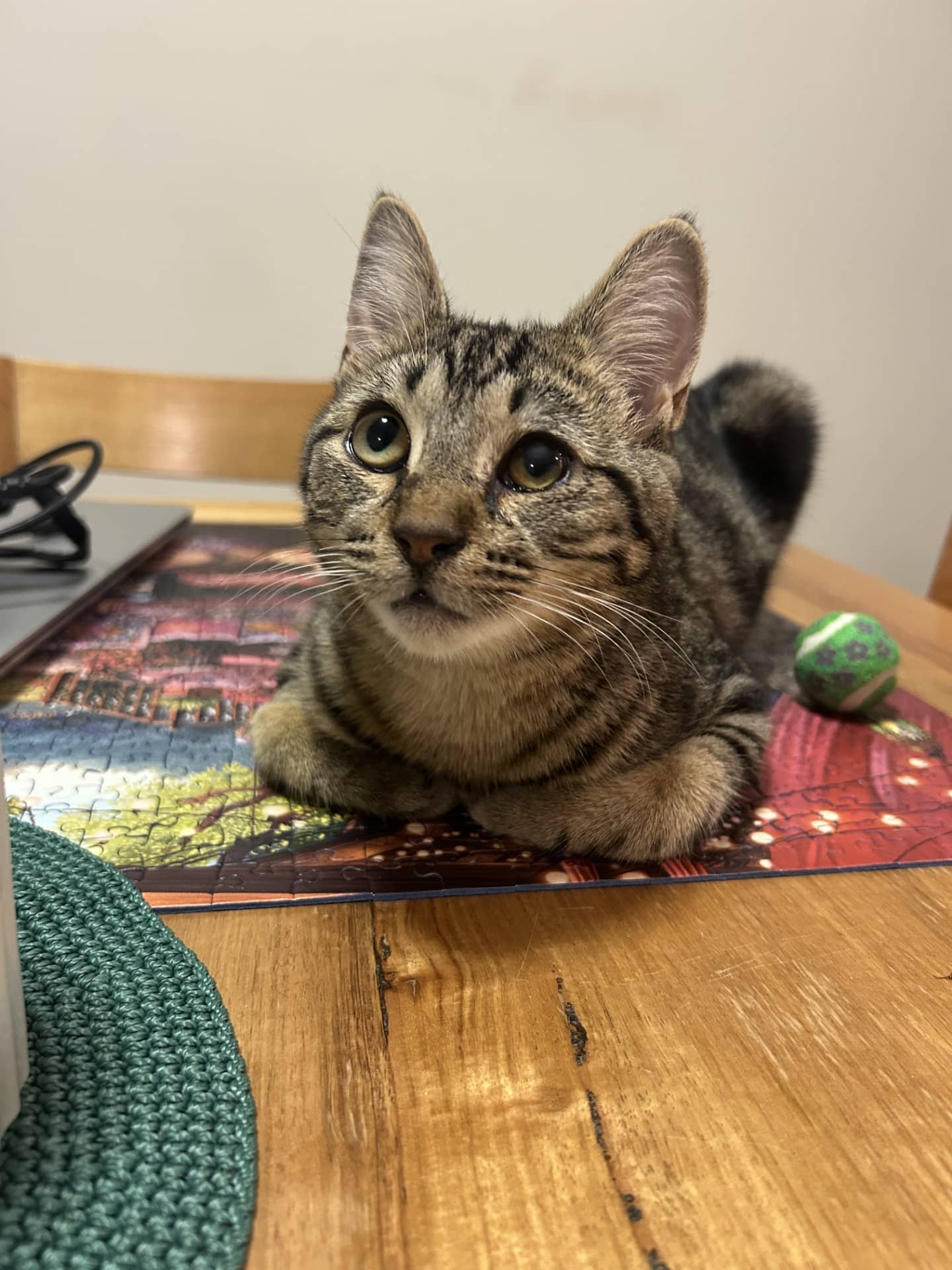 Hi, I’m Jzargo. I’m a male Domestic Short Hair kitten with an average energy level. At six months old, I’m curious, affectionate, and ready for adventures and quiet cuddle times alike. I love pouncing on feather toys, chasing string, and then curling up in a warm lap for a nap. Best with Children Aged: No known child related issues. My coat is sleek and short, easy to groom, and I’m told I’m a good listener when I’m looking for pets and reassurance. I’m hoping for a patient, loving home where I can explore, play, and settle in with a reliable routine. I’m the kind of cat who enjoys window watching as much as a climbing tree, so a home with vertical space and cozy sun spots would be perfect. If you’re looking for a friendly, inquisitive little companion to add warmth to your days, I’d love to meet you.